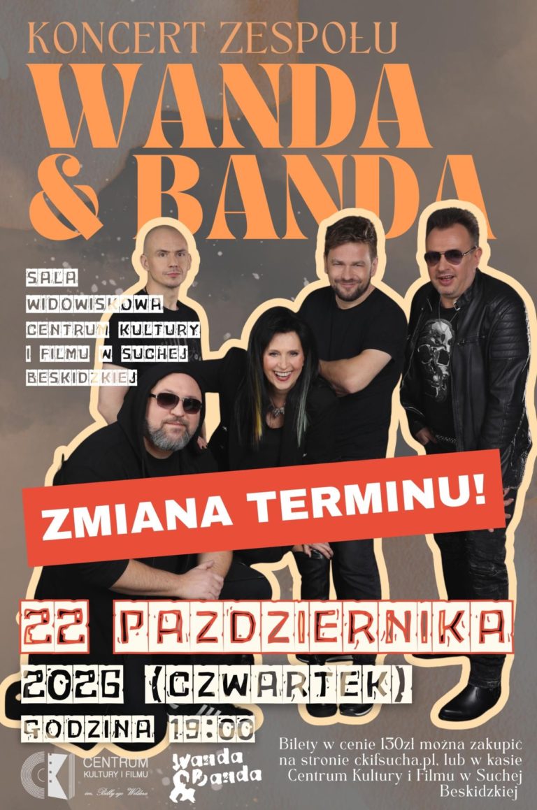 Informujemy, że koncert zespołu Wanda i Banda zaplanowany na 5 marca br., zostaje przeniesiony. Nowy termin wydarzenia to 22 października 2026 r., godz. 19:00. Wszystkie zakupione bilety zachowują [...]