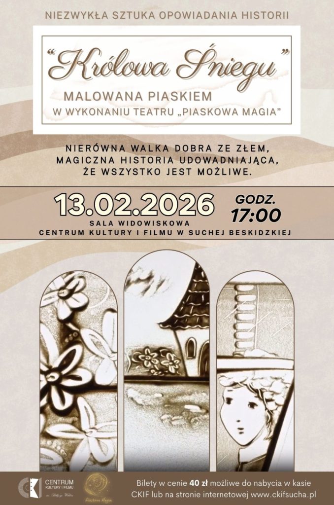 – Spektakl „Królowa Śniegu” malowany piaskiem w wykonaniu Teatru „Piaskowa Magia” – niezwykła sztuka opowiadania historii. Przepełnione emocjami, autentycznością oraz nieprzewidywalnością widowisko, które powstaje z jednego z najprostszych materiałów – piasku. Ulotność piaskowych obrazów sprawia, że realizacje żyją tylko raz – nie da się ich obejrzeć w identycznej formie drugi raz.