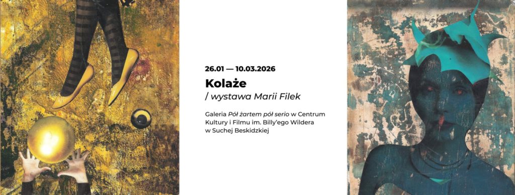 Serdecznie zapraszamy na wystawę pt. „Kolaże” Marii Filek w Galerii „Pół żartem pół serio” w Centrum Kultury i Filmu w Suchej Beskidzkiej. Ekspozycję będzie można oglądać do 10 marca 2026 roku.