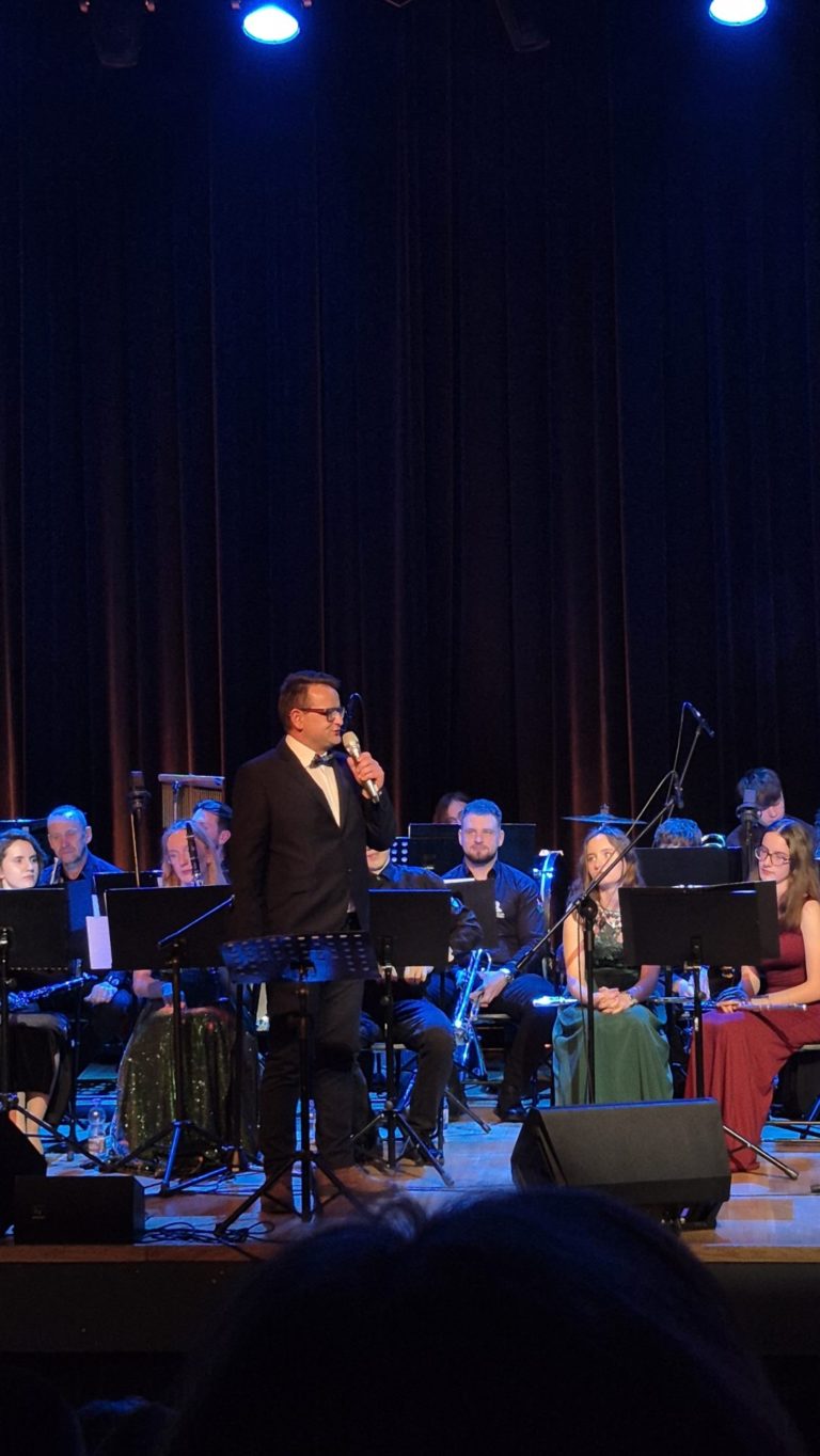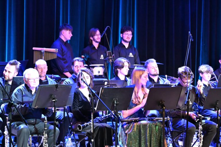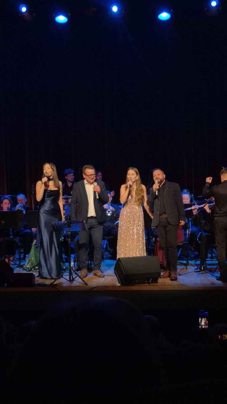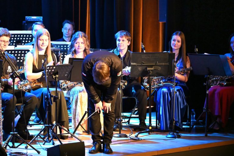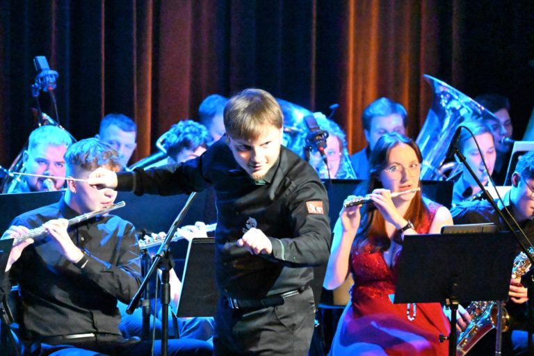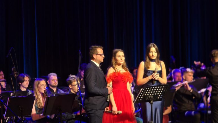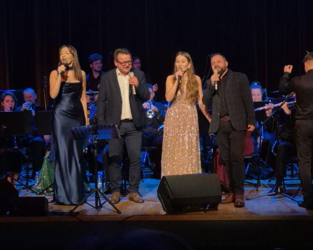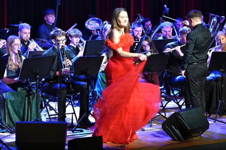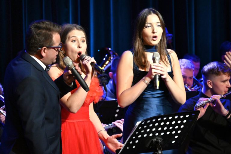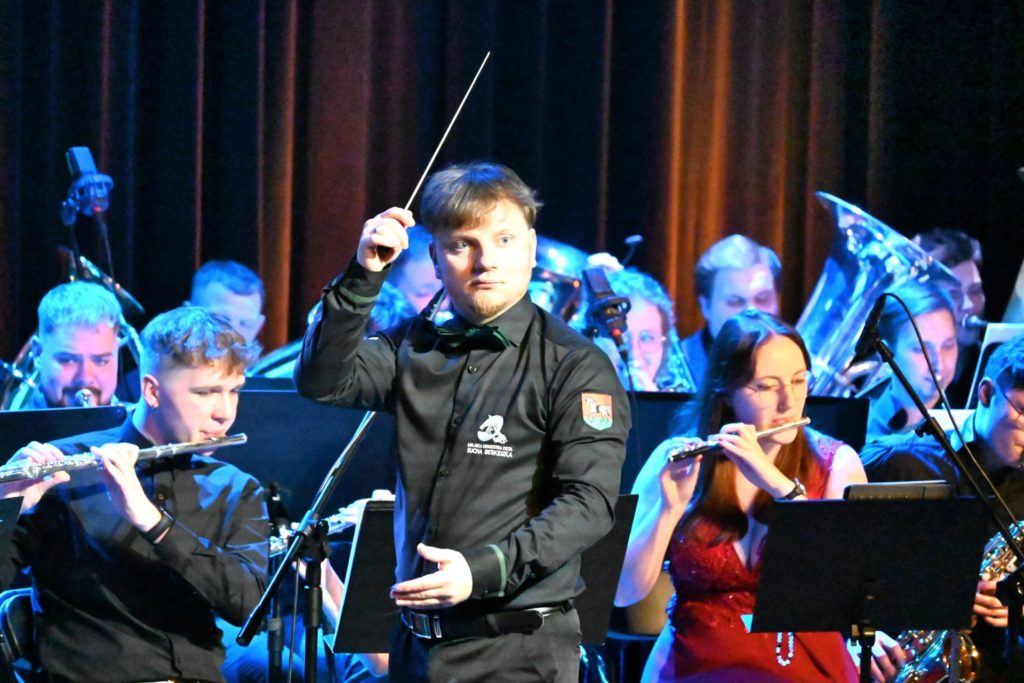 Program wieczoru był prawdziwą muzyczną podróżą przez style, epoki i nastroje. Koncert otworzyła efektowna suita „Tschaikovsky Portrait”, prezentująca najsłynniejsze motywy Piotra Czajkowskiego w widowiskowym brzmieniu orkiestry dętej, od pierwszych taktów budując uroczystą i elegancką atmosferę. W dalszej części publiczność usłyszała zarówno utwory nawiązujące do klimatu świąteczno-noworocznego, poruszające kolędy – jak i monumentalną muzykę filmową z filmu „Independence Day”. Utwór ten ma dla orkiestry szczególne znaczenie, gdyż był jednym z punktów programu finału 47. Małopolskiego Festiwalu Orkiestr Dętych Echo Trombity w Nowym Sączu, gdzie zespół zdobył III miejsce. Duże emocje wzbudził blok muzyki filmowej i animacyjnej, który spotkał się z bardzo żywym odbiorem publiczności. Nie zabrakło również klasyki i form scenicznych – publiczność wysłuchała „Tańca węgierskiego nr 5” Johannesa Brahmsa, czardasza z operetki „Cygańska miłość” Franza Lehára oraz jednej z najsłynniejszych arii operowych – „O mio babbino caro” Giacoma Pucciniego. W koncercie wystąpili soliści: Maja Fryś, Mariola Siepak-Drobna oraz Kamil Kołodziejczyk, którzy swoimi interpretacjami dodali programowi różnorodności, emocji i scenicznego blasku. W finałowej części wieczoru zabrzmiały jazzowe standardy oraz fragmenty musicalu „Upiór w operze”. Całość zwieńczył energetyczny utwór „Jak nie my to kto”, który wspólnie zaśpiewali wszyscy soliści oraz dyrektor Centrum Kultury i Filmu w Suchej Beskidzkiej Grzegorz Wysmołek. Ten wspólny finał stał się radosnym, integrującym akcentem koncertu i został nagrodzony długimi, gorącymi brawami.