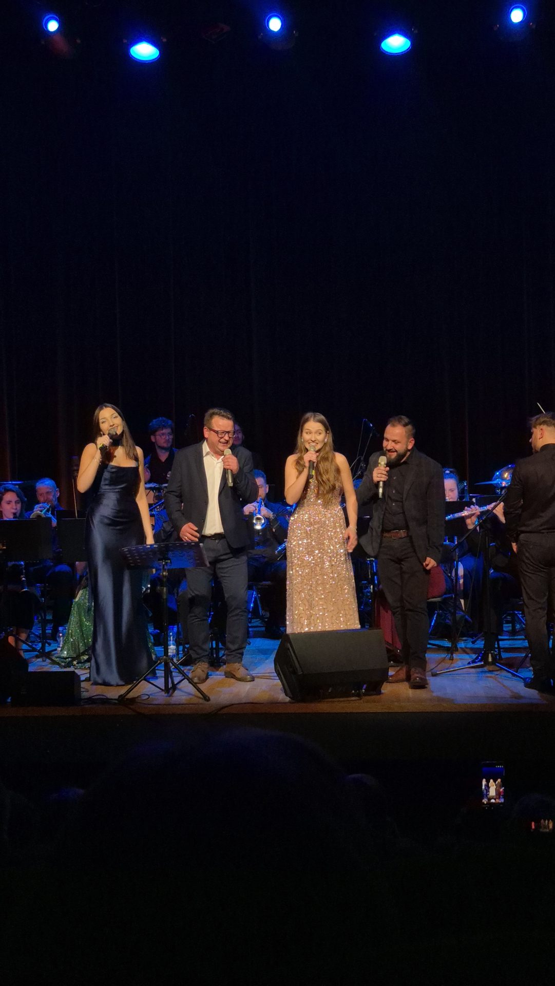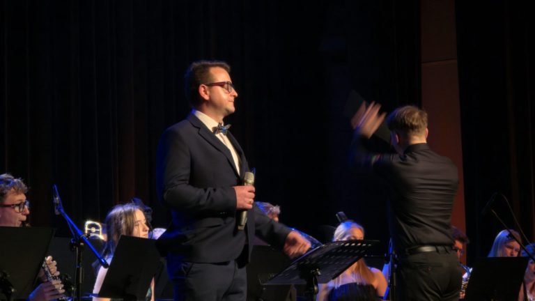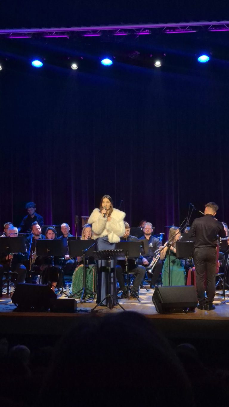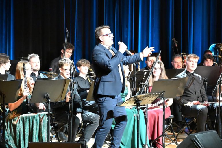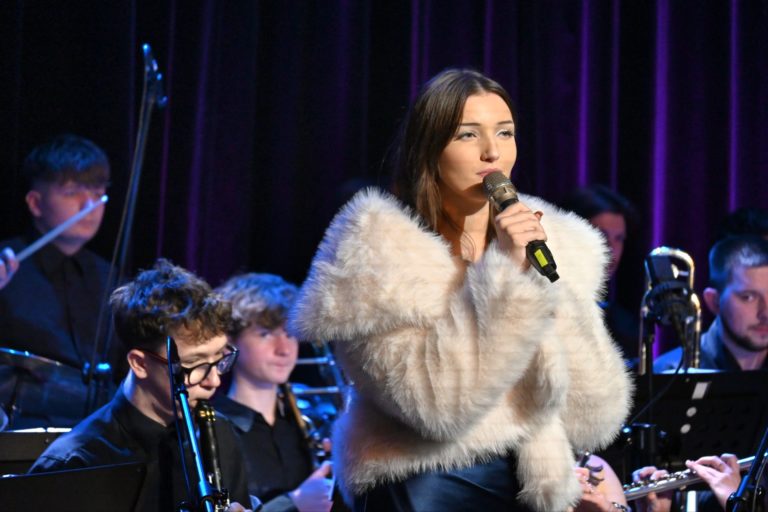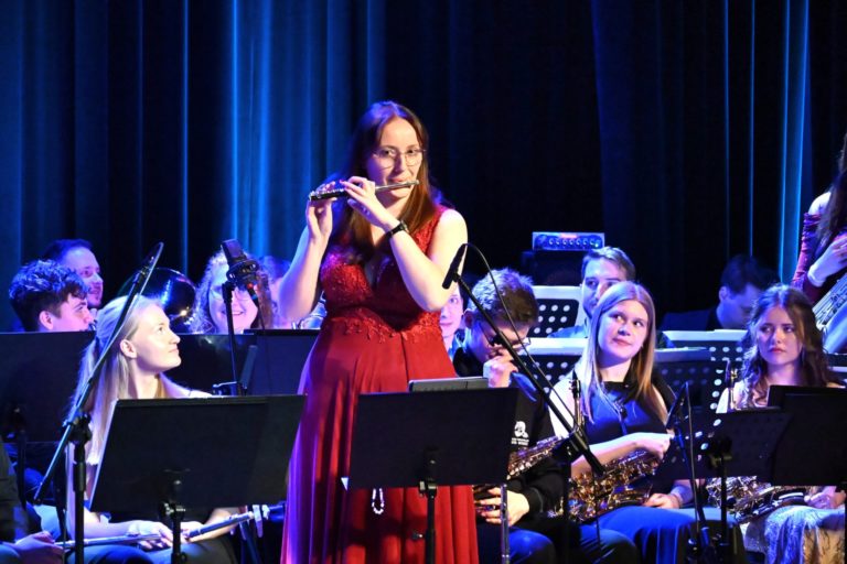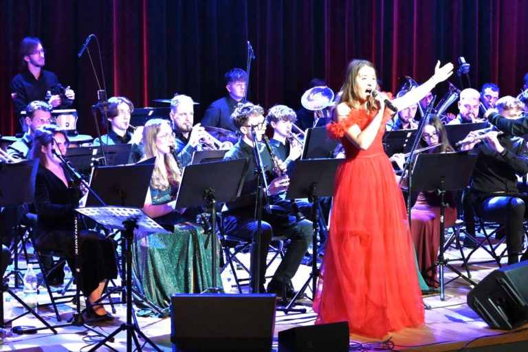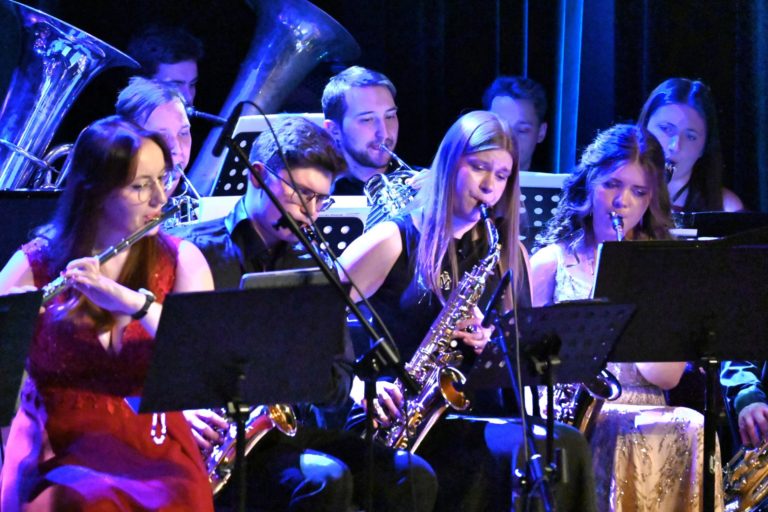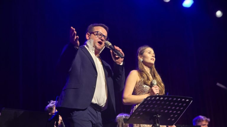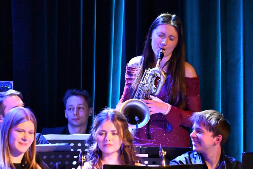 Program wieczoru był prawdziwą muzyczną podróżą przez style, epoki i nastroje. Koncert otworzyła efektowna suita „Tschaikovsky Portrait”, prezentująca najsłynniejsze motywy Piotra Czajkowskiego w widowiskowym brzmieniu orkiestry dętej, od pierwszych taktów budując uroczystą i elegancką atmosferę. W dalszej części publiczność usłyszała zarówno utwory nawiązujące do klimatu świąteczno-noworocznego, poruszające kolędy – jak i monumentalną muzykę filmową z filmu „Independence Day”. Utwór ten ma dla orkiestry szczególne znaczenie, gdyż był jednym z punktów programu finału 47. Małopolskiego Festiwalu Orkiestr Dętych Echo Trombity w Nowym Sączu, gdzie zespół zdobył III miejsce. Duże emocje wzbudził blok muzyki filmowej i animacyjnej, który spotkał się z bardzo żywym odbiorem publiczności. Nie zabrakło również klasyki i form scenicznych – publiczność wysłuchała „Tańca węgierskiego nr 5” Johannesa Brahmsa, czardasza z operetki „Cygańska miłość” Franza Lehára oraz jednej z najsłynniejszych arii operowych – „O mio babbino caro” Giacoma Pucciniego. W koncercie wystąpili soliści: Maja Fryś, Mariola Siepak-Drobna oraz Kamil Kołodziejczyk, którzy swoimi interpretacjami dodali programowi różnorodności, emocji i scenicznego blasku. W finałowej części wieczoru zabrzmiały jazzowe standardy oraz fragmenty musicalu „Upiór w operze”. Całość zwieńczył energetyczny utwór „Jak nie my to kto”, który wspólnie zaśpiewali wszyscy soliści oraz dyrektor Centrum Kultury i Filmu w Suchej Beskidzkiej Grzegorz Wysmołek. Ten wspólny finał stał się radosnym, integrującym akcentem koncertu i został nagrodzony długimi, gorącymi brawami.