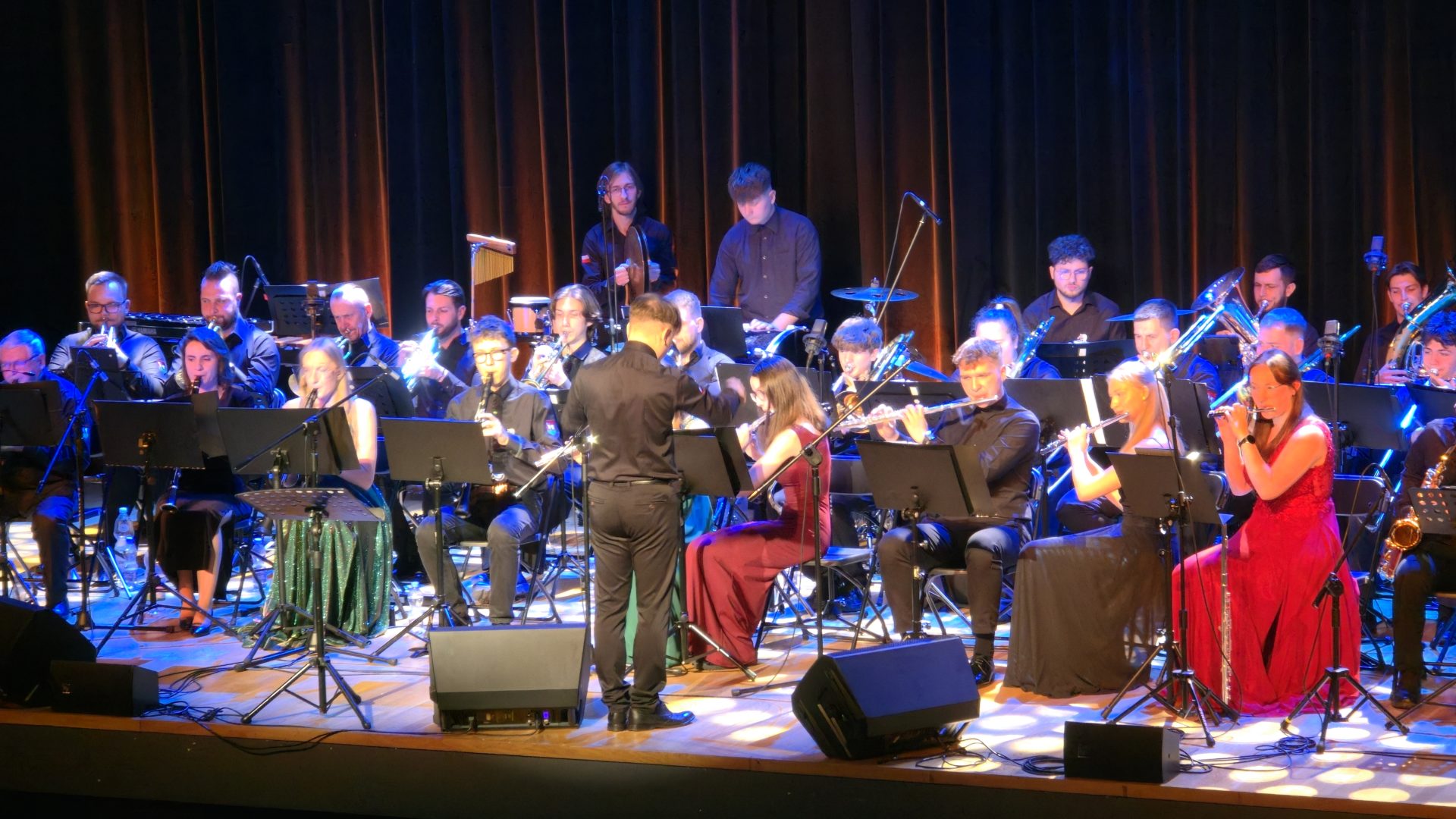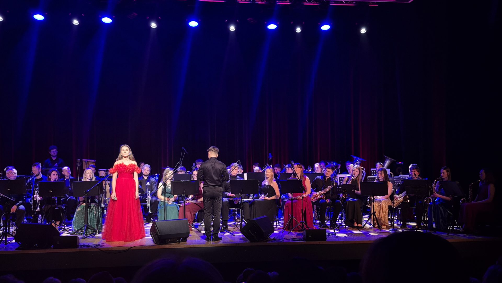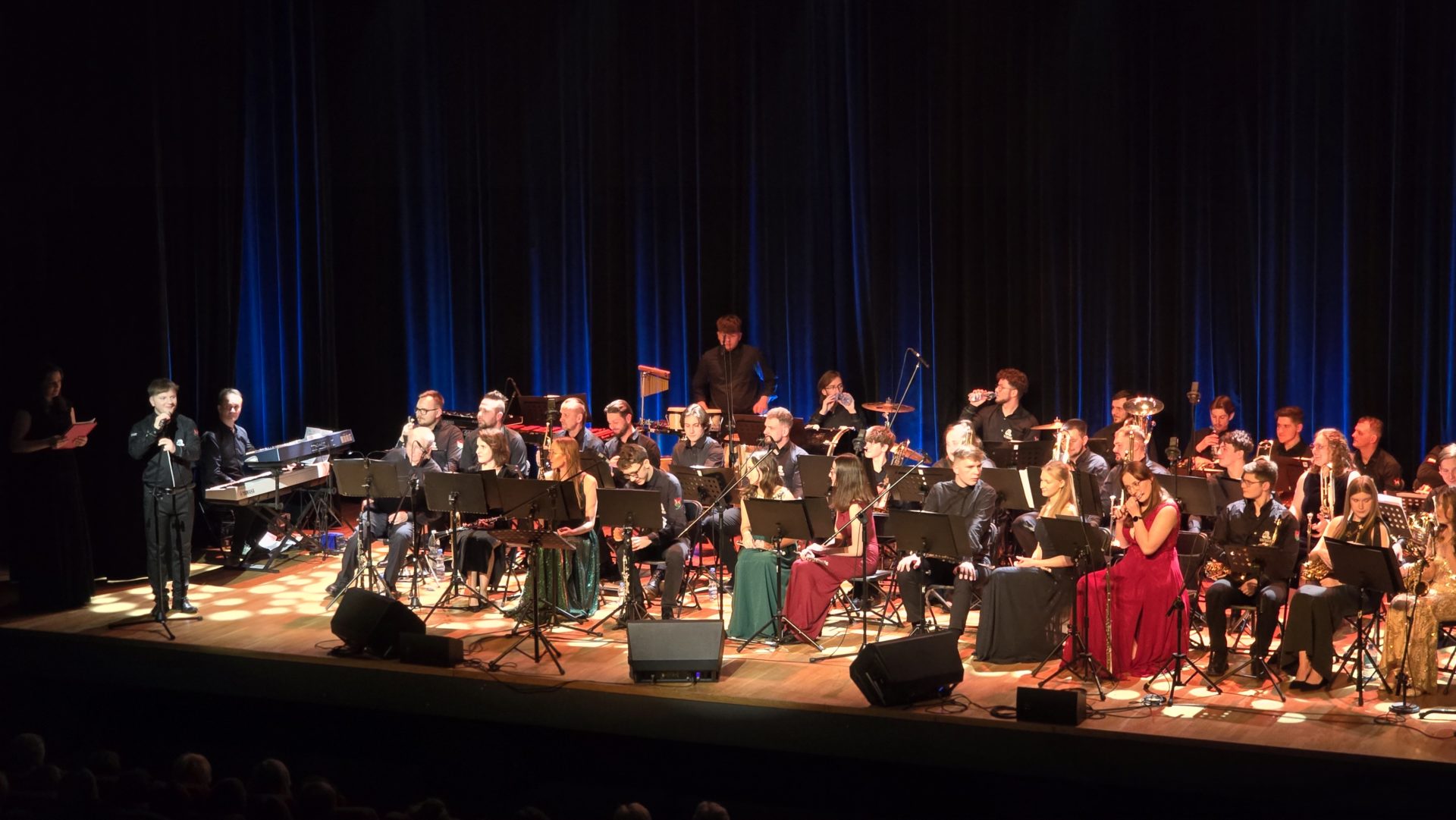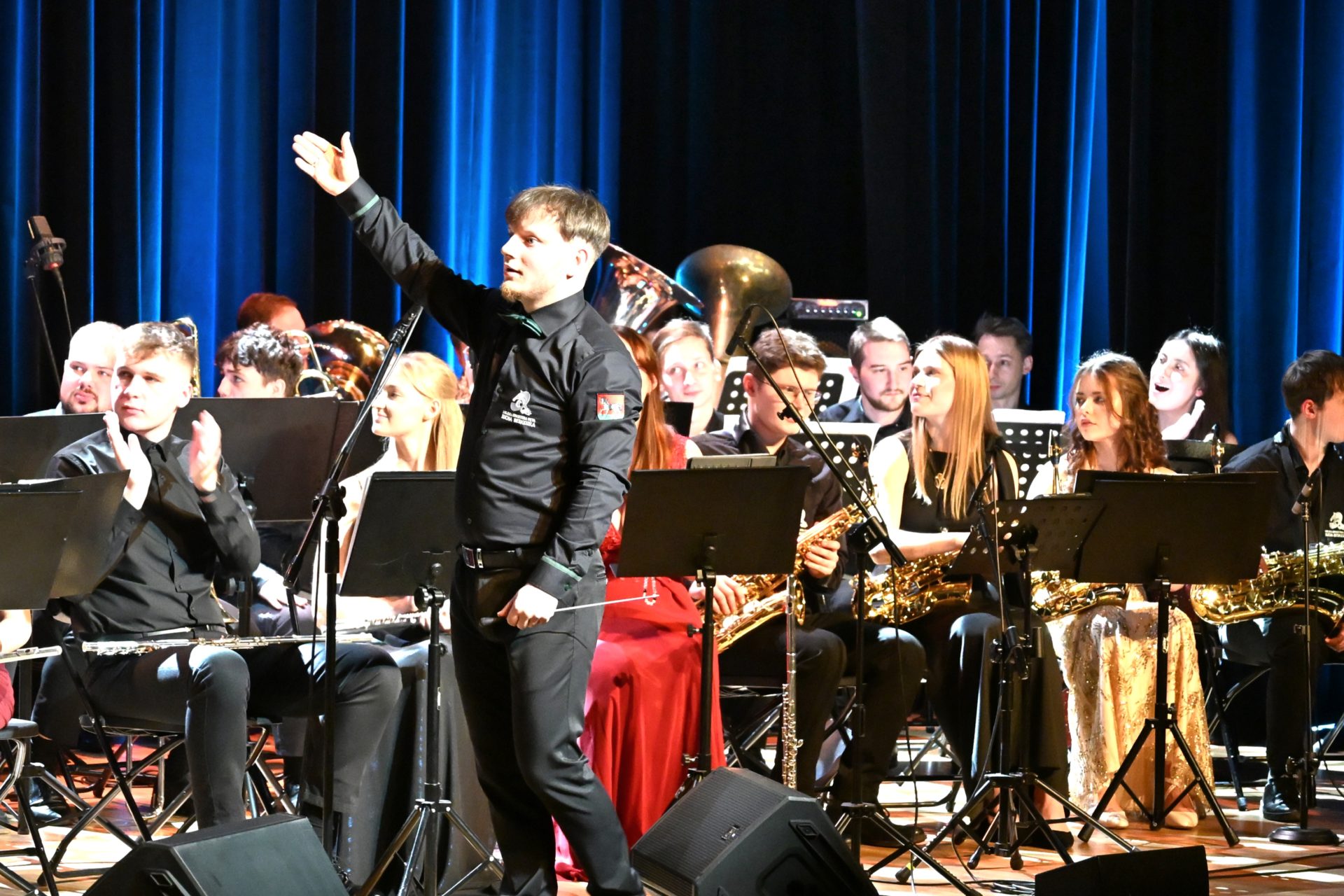 Program wieczoru był prawdziwą muzyczną podróżą przez style, epoki i nastroje. Koncert otworzyła efektowna suita „Tschaikovsky Portrait”, prezentująca najsłynniejsze motywy Piotra Czajkowskiego w widowiskowym brzmieniu orkiestry dętej, od pierwszych taktów budując uroczystą i elegancką atmosferę. W dalszej części publiczność usłyszała zarówno utwory nawiązujące do klimatu świąteczno-noworocznego, poruszające kolędy – jak i monumentalną muzykę filmową z filmu „Independence Day”. Utwór ten ma dla orkiestry szczególne znaczenie, gdyż był jednym z punktów programu finału 47. Małopolskiego Festiwalu Orkiestr Dętych Echo Trombity w Nowym Sączu, gdzie zespół zdobył III miejsce. Duże emocje wzbudził blok muzyki filmowej i animacyjnej, który spotkał się z bardzo żywym odbiorem publiczności. Nie zabrakło również klasyki i form scenicznych – publiczność wysłuchała „Tańca węgierskiego nr 5” Johannesa Brahmsa, czardasza z operetki „Cygańska miłość” Franza Lehára oraz jednej z najsłynniejszych arii operowych – „O mio babbino caro” Giacoma Pucciniego. W koncercie wystąpili soliści: Maja Fryś, Mariola Siepak-Drobna oraz Kamil Kołodziejczyk, którzy swoimi interpretacjami dodali programowi różnorodności, emocji i scenicznego blasku. W finałowej części wieczoru zabrzmiały jazzowe standardy oraz fragmenty musicalu „Upiór w operze”. Całość zwieńczył energetyczny utwór „Jak nie my to kto”, który wspólnie zaśpiewali wszyscy soliści oraz dyrektor Centrum Kultury i Filmu w Suchej Beskidzkiej Grzegorz Wysmołek. Ten wspólny finał stał się radosnym, integrującym akcentem koncertu i został nagrodzony długimi, gorącymi brawami.