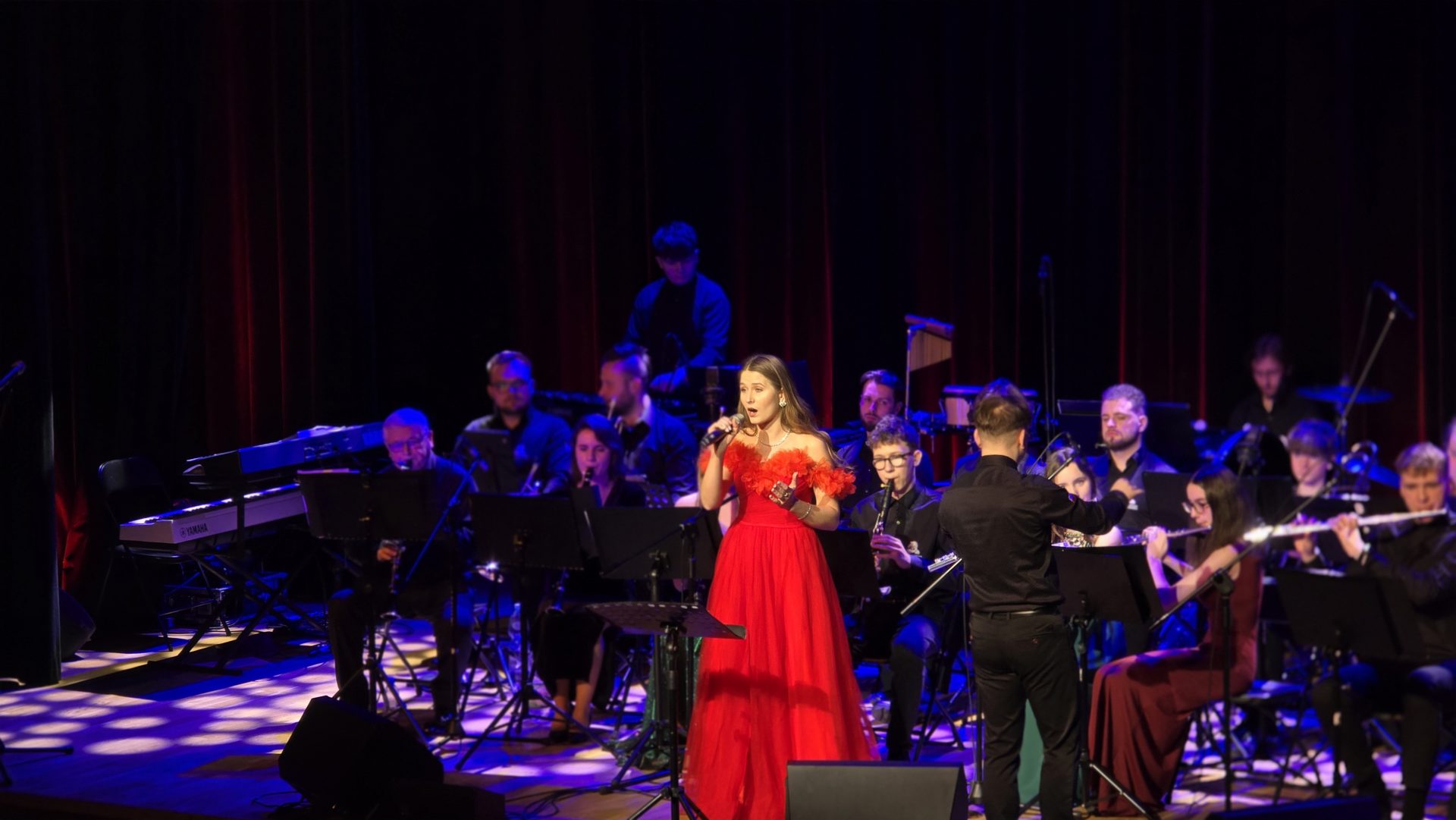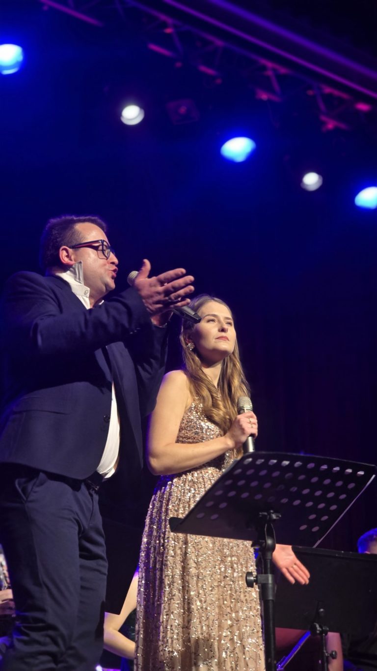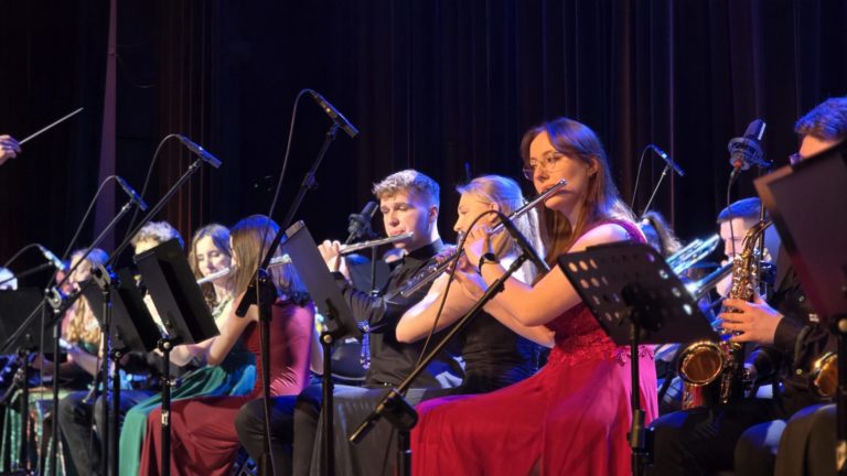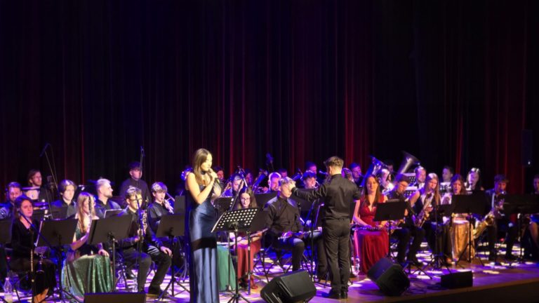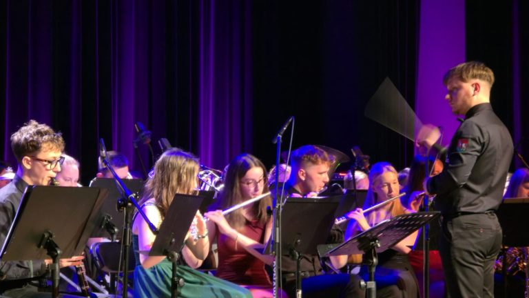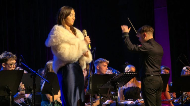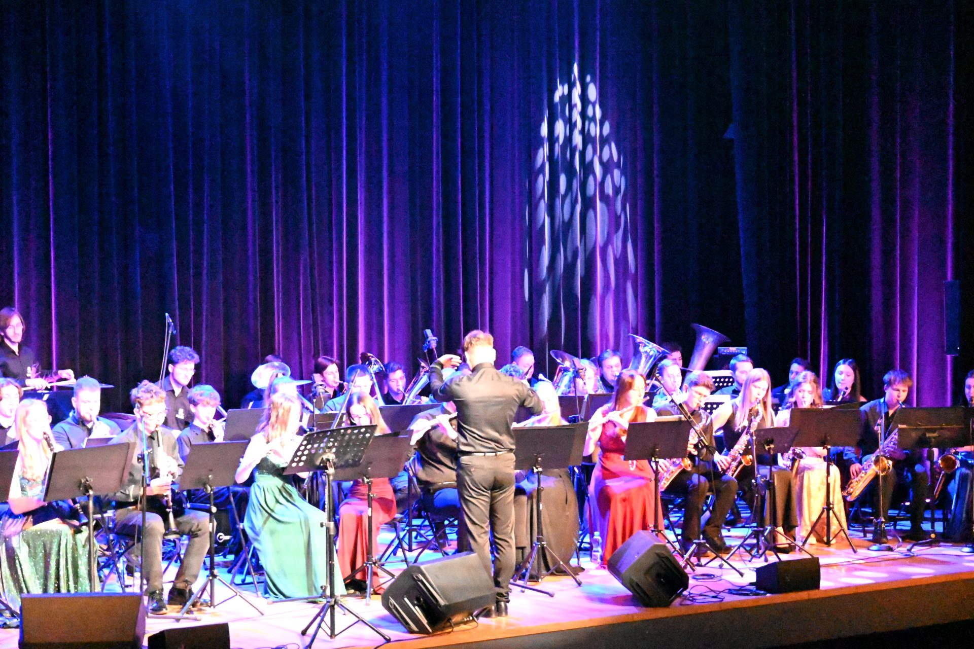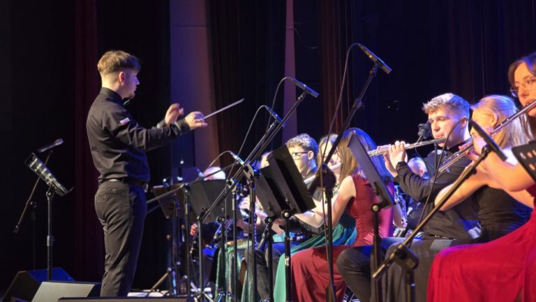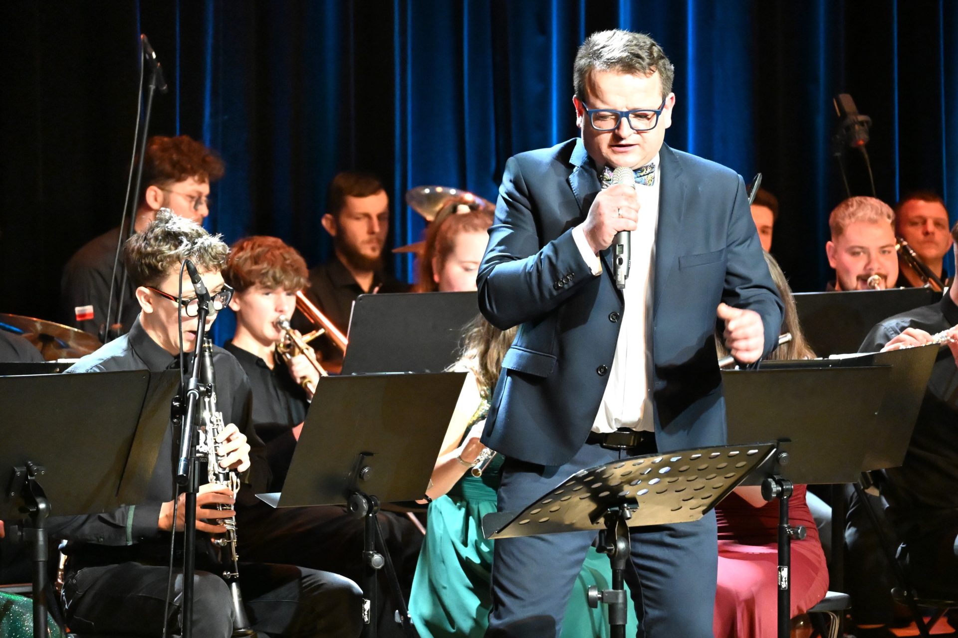 Program wieczoru był prawdziwą muzyczną podróżą przez style, epoki i nastroje. Koncert otworzyła efektowna suita „Tschaikovsky Portrait”, prezentująca najsłynniejsze motywy Piotra Czajkowskiego w widowiskowym brzmieniu orkiestry dętej, od pierwszych taktów budując uroczystą i elegancką atmosferę. W dalszej części publiczność usłyszała zarówno utwory nawiązujące do klimatu świąteczno-noworocznego, poruszające kolędy – jak i monumentalną muzykę filmową z filmu „Independence Day”. Utwór ten ma dla orkiestry szczególne znaczenie, gdyż był jednym z punktów programu finału 47. Małopolskiego Festiwalu Orkiestr Dętych Echo Trombity w Nowym Sączu, gdzie zespół zdobył III miejsce. Duże emocje wzbudził blok muzyki filmowej i animacyjnej, który spotkał się z bardzo żywym odbiorem publiczności. Nie zabrakło również klasyki i form scenicznych – publiczność wysłuchała „Tańca węgierskiego nr 5” Johannesa Brahmsa, czardasza z operetki „Cygańska miłość” Franza Lehára oraz jednej z najsłynniejszych arii operowych – „O mio babbino caro” Giacoma Pucciniego. W koncercie wystąpili soliści: Maja Fryś, Mariola Siepak-Drobna oraz Kamil Kołodziejczyk, którzy swoimi interpretacjami dodali programowi różnorodności, emocji i scenicznego blasku. W finałowej części wieczoru zabrzmiały jazzowe standardy oraz fragmenty musicalu „Upiór w operze”. Całość zwieńczył energetyczny utwór „Jak nie my to kto”, który wspólnie zaśpiewali wszyscy soliści oraz dyrektor Centrum Kultury i Filmu w Suchej Beskidzkiej Grzegorz Wysmołek. Ten wspólny finał stał się radosnym, integrującym akcentem koncertu i został nagrodzony długimi, gorącymi brawami.