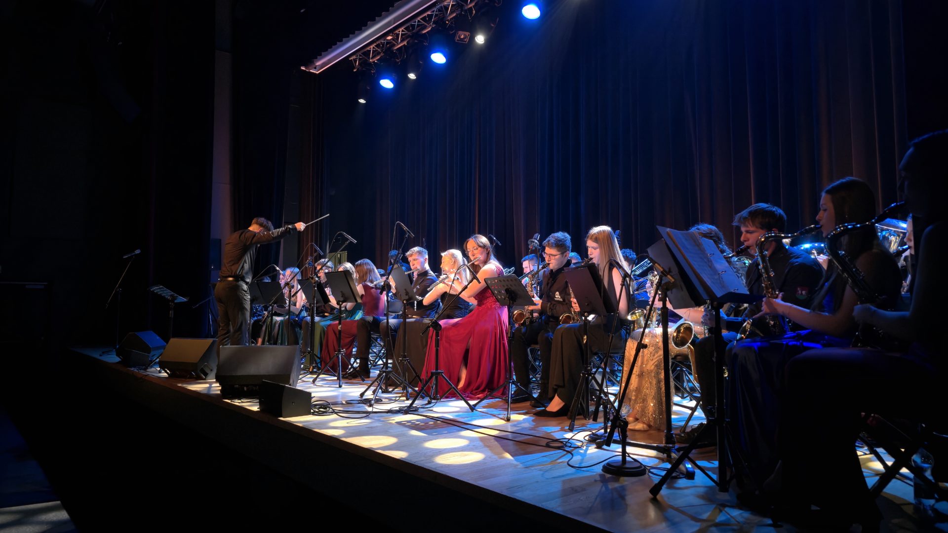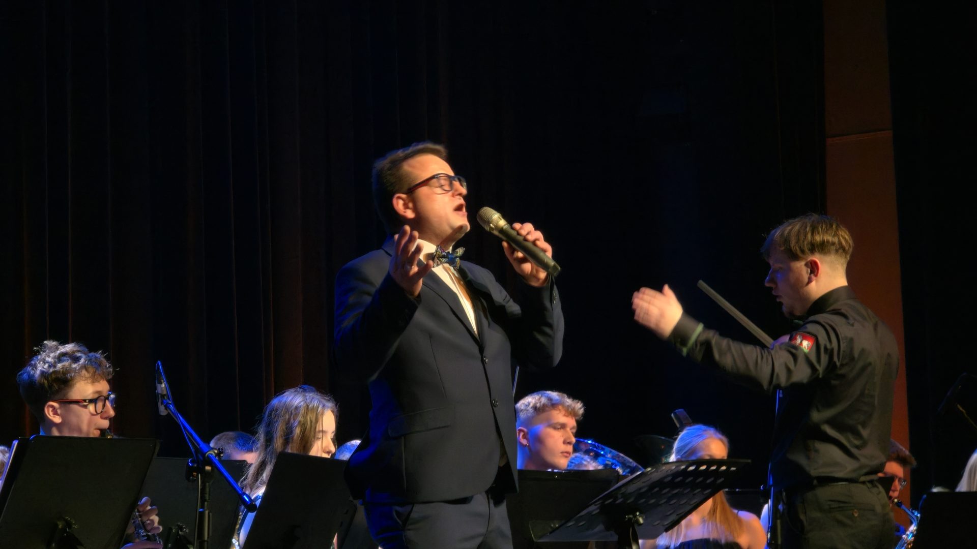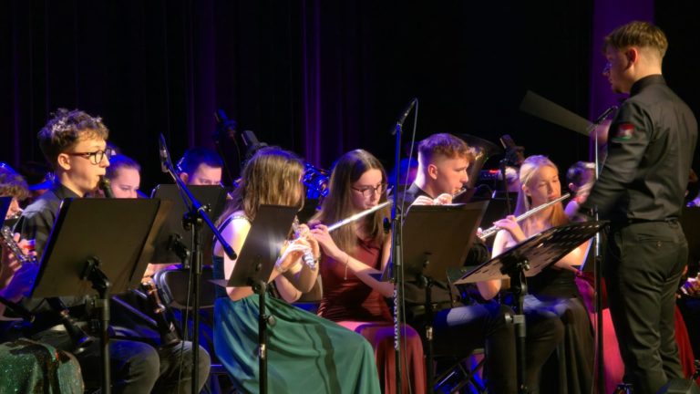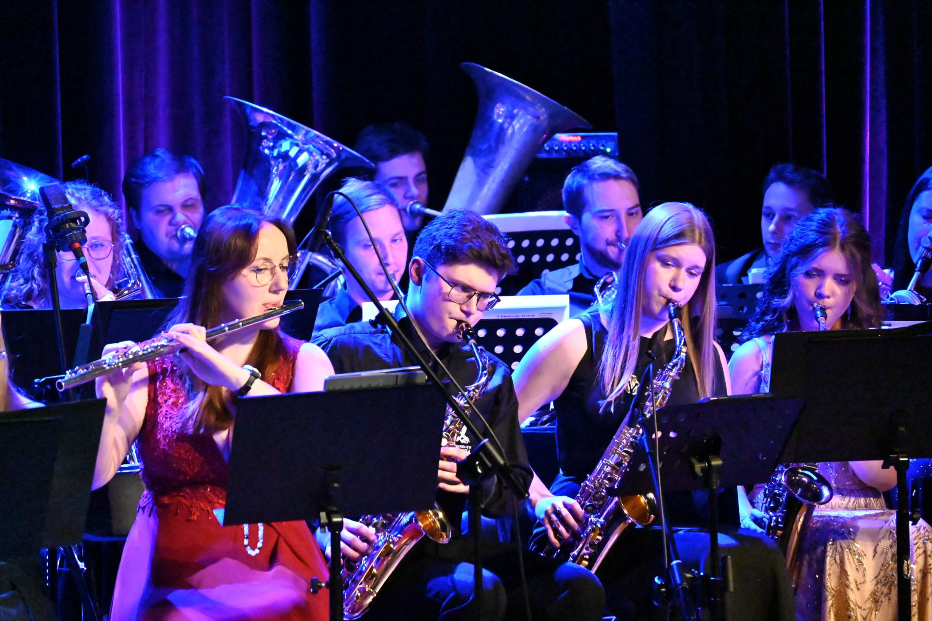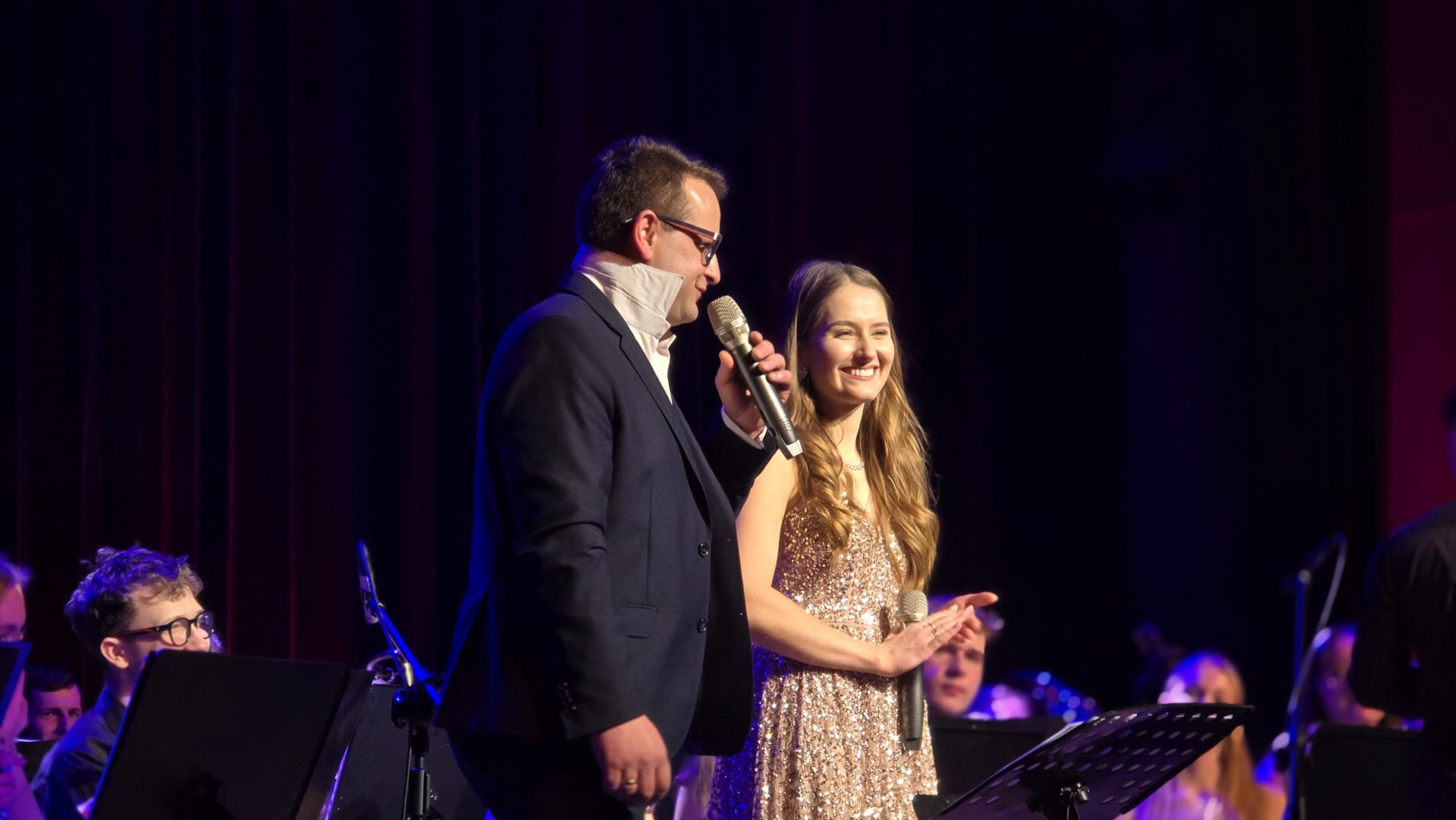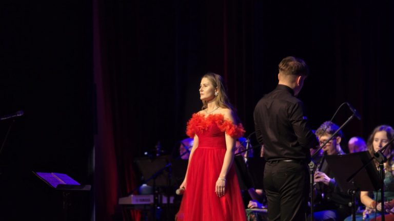 Program wieczoru był prawdziwą muzyczną podróżą przez style, epoki i nastroje. Koncert otworzyła efektowna suita „Tschaikovsky Portrait”, prezentująca najsłynniejsze motywy Piotra Czajkowskiego w widowiskowym brzmieniu orkiestry dętej, od pierwszych taktów budując uroczystą i elegancką atmosferę. W dalszej części publiczność usłyszała zarówno utwory nawiązujące do klimatu świąteczno-noworocznego, poruszające kolędy – jak i monumentalną muzykę filmową z filmu „Independence Day”. Utwór ten ma dla orkiestry szczególne znaczenie, gdyż był jednym z punktów programu finału 47. Małopolskiego Festiwalu Orkiestr Dętych Echo Trombity w Nowym Sączu, gdzie zespół zdobył III miejsce. Duże emocje wzbudził blok muzyki filmowej i animacyjnej, który spotkał się z bardzo żywym odbiorem publiczności. Nie zabrakło również klasyki i form scenicznych – publiczność wysłuchała „Tańca węgierskiego nr 5” Johannesa Brahmsa, czardasza z operetki „Cygańska miłość” Franza Lehára oraz jednej z najsłynniejszych arii operowych – „O mio babbino caro” Giacoma Pucciniego. W koncercie wystąpili soliści: Maja Fryś, Mariola Siepak-Drobna oraz Kamil Kołodziejczyk, którzy swoimi interpretacjami dodali programowi różnorodności, emocji i scenicznego blasku. W finałowej części wieczoru zabrzmiały jazzowe standardy oraz fragmenty musicalu „Upiór w operze”. Całość zwieńczył energetyczny utwór „Jak nie my to kto”, który wspólnie zaśpiewali wszyscy soliści oraz dyrektor Centrum Kultury i Filmu w Suchej Beskidzkiej Grzegorz Wysmołek. Ten wspólny finał stał się radosnym, integrującym akcentem koncertu i został nagrodzony długimi, gorącymi brawami.