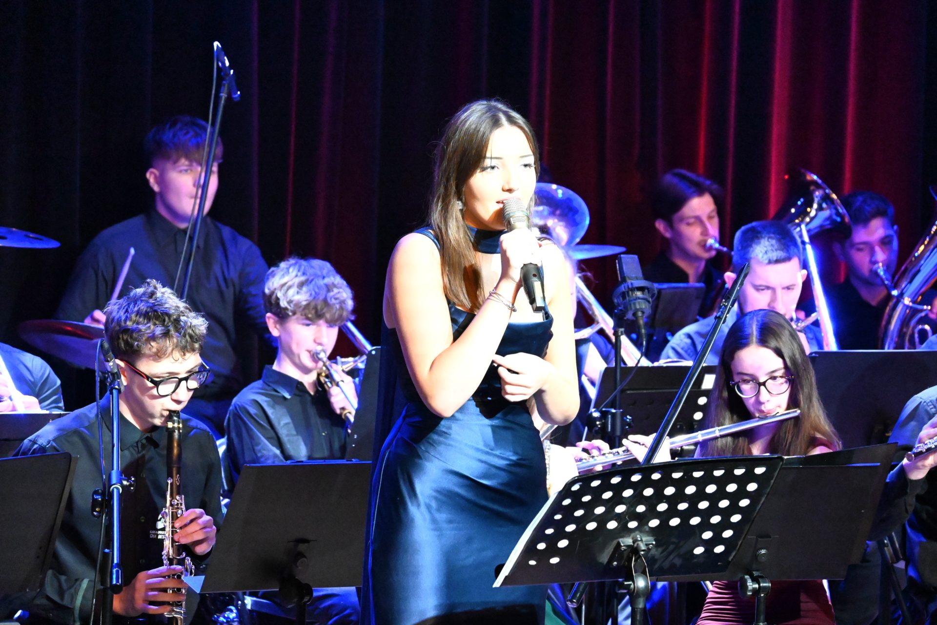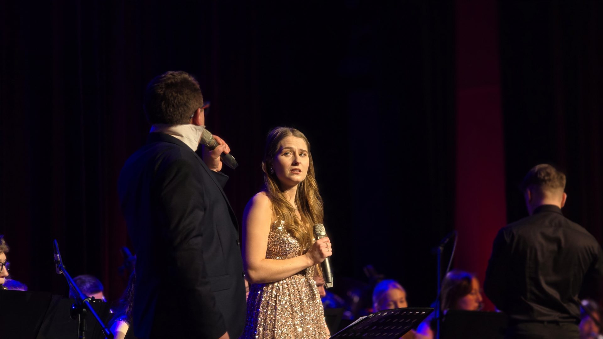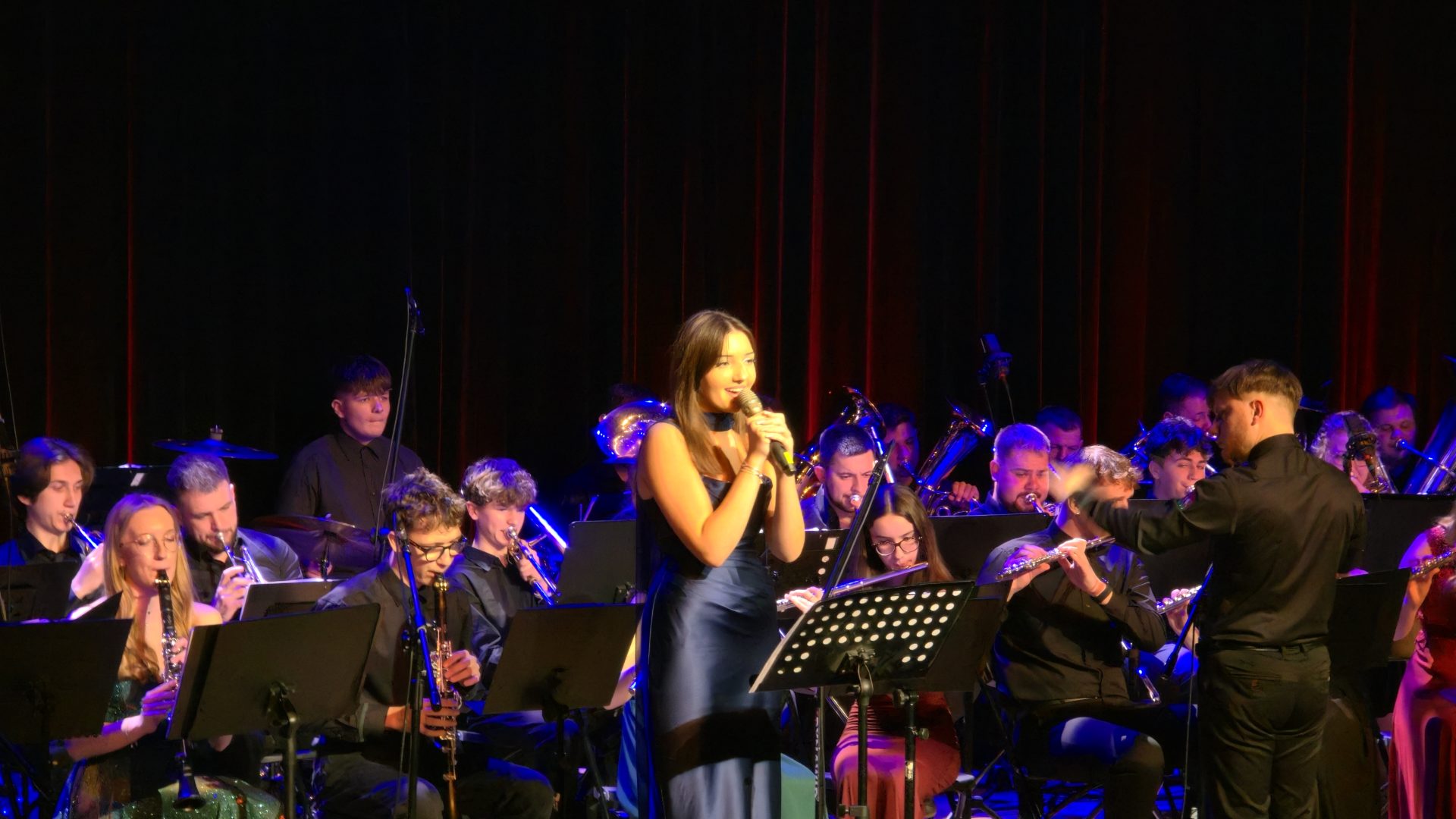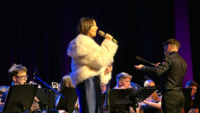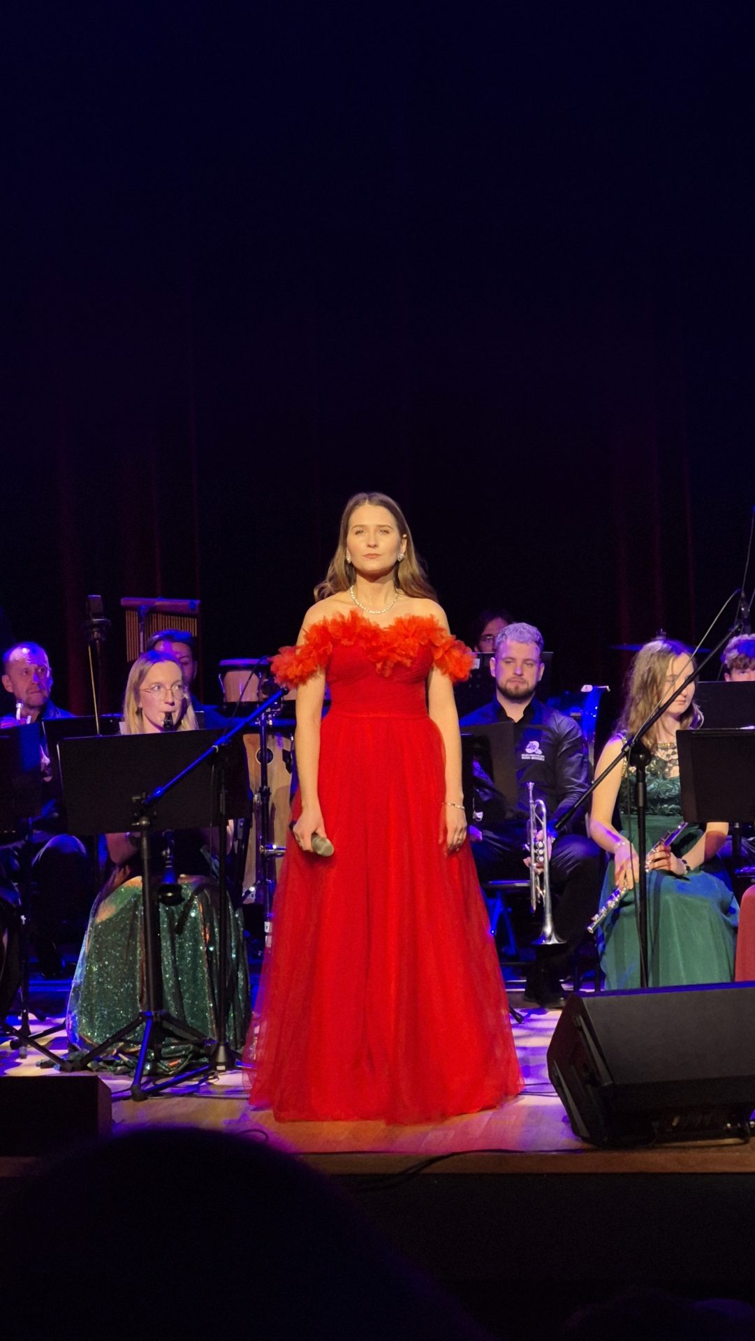 Program wieczoru był prawdziwą muzyczną podróżą przez style, epoki i nastroje. Koncert otworzyła efektowna suita „Tschaikovsky Portrait”, prezentująca najsłynniejsze motywy Piotra Czajkowskiego w widowiskowym brzmieniu orkiestry dętej, od pierwszych taktów budując uroczystą i elegancką atmosferę. W dalszej części publiczność usłyszała zarówno utwory nawiązujące do klimatu świąteczno-noworocznego, poruszające kolędy – jak i monumentalną muzykę filmową z filmu „Independence Day”. Utwór ten ma dla orkiestry szczególne znaczenie, gdyż był jednym z punktów programu finału 47. Małopolskiego Festiwalu Orkiestr Dętych Echo Trombity w Nowym Sączu, gdzie zespół zdobył III miejsce. Duże emocje wzbudził blok muzyki filmowej i animacyjnej, który spotkał się z bardzo żywym odbiorem publiczności. Nie zabrakło również klasyki i form scenicznych – publiczność wysłuchała „Tańca węgierskiego nr 5” Johannesa Brahmsa, czardasza z operetki „Cygańska miłość” Franza Lehára oraz jednej z najsłynniejszych arii operowych – „O mio babbino caro” Giacoma Pucciniego. W koncercie wystąpili soliści: Maja Fryś, Mariola Siepak-Drobna oraz Kamil Kołodziejczyk, którzy swoimi interpretacjami dodali programowi różnorodności, emocji i scenicznego blasku. W finałowej części wieczoru zabrzmiały jazzowe standardy oraz fragmenty musicalu „Upiór w operze”. Całość zwieńczył energetyczny utwór „Jak nie my to kto”, który wspólnie zaśpiewali wszyscy soliści oraz dyrektor Centrum Kultury i Filmu w Suchej Beskidzkiej Grzegorz Wysmołek. Ten wspólny finał stał się radosnym, integrującym akcentem koncertu i został nagrodzony długimi, gorącymi brawami.
