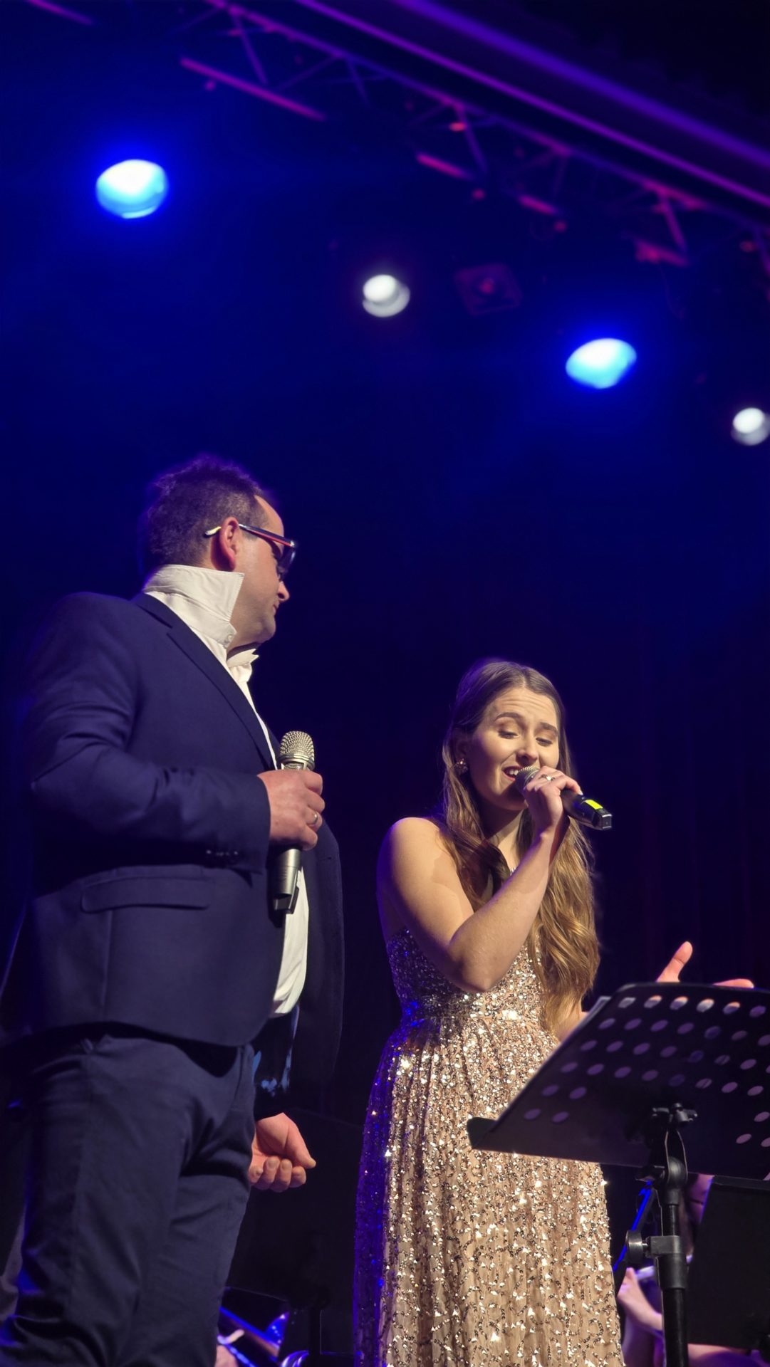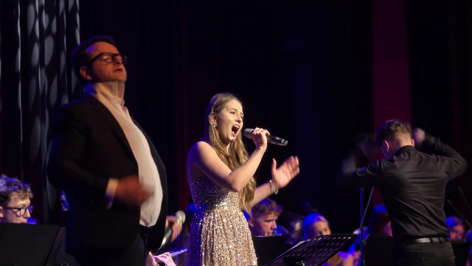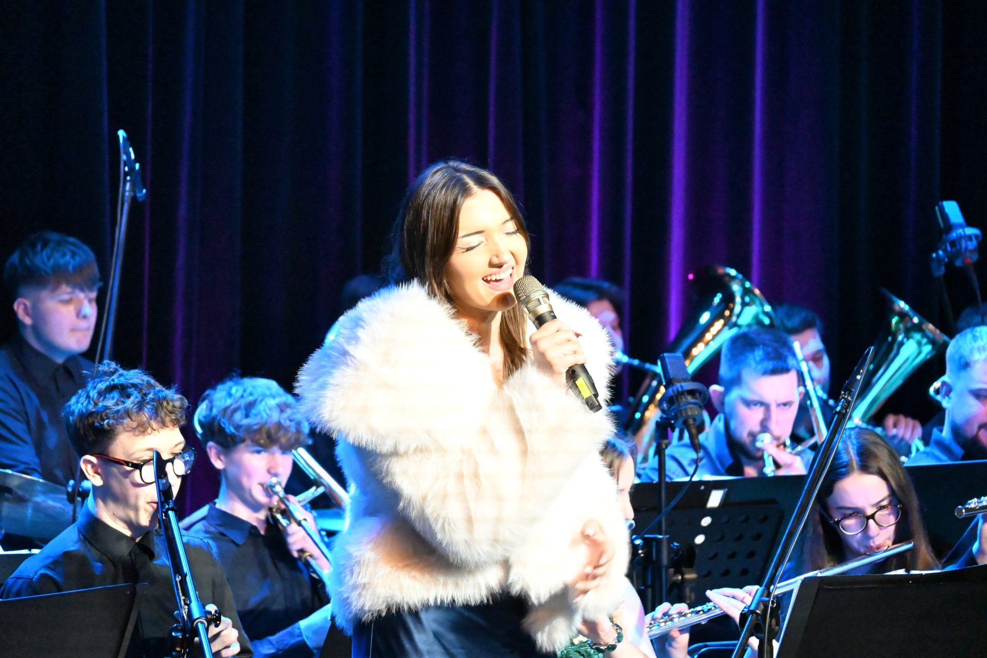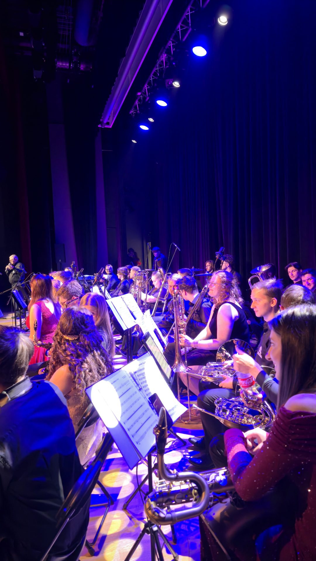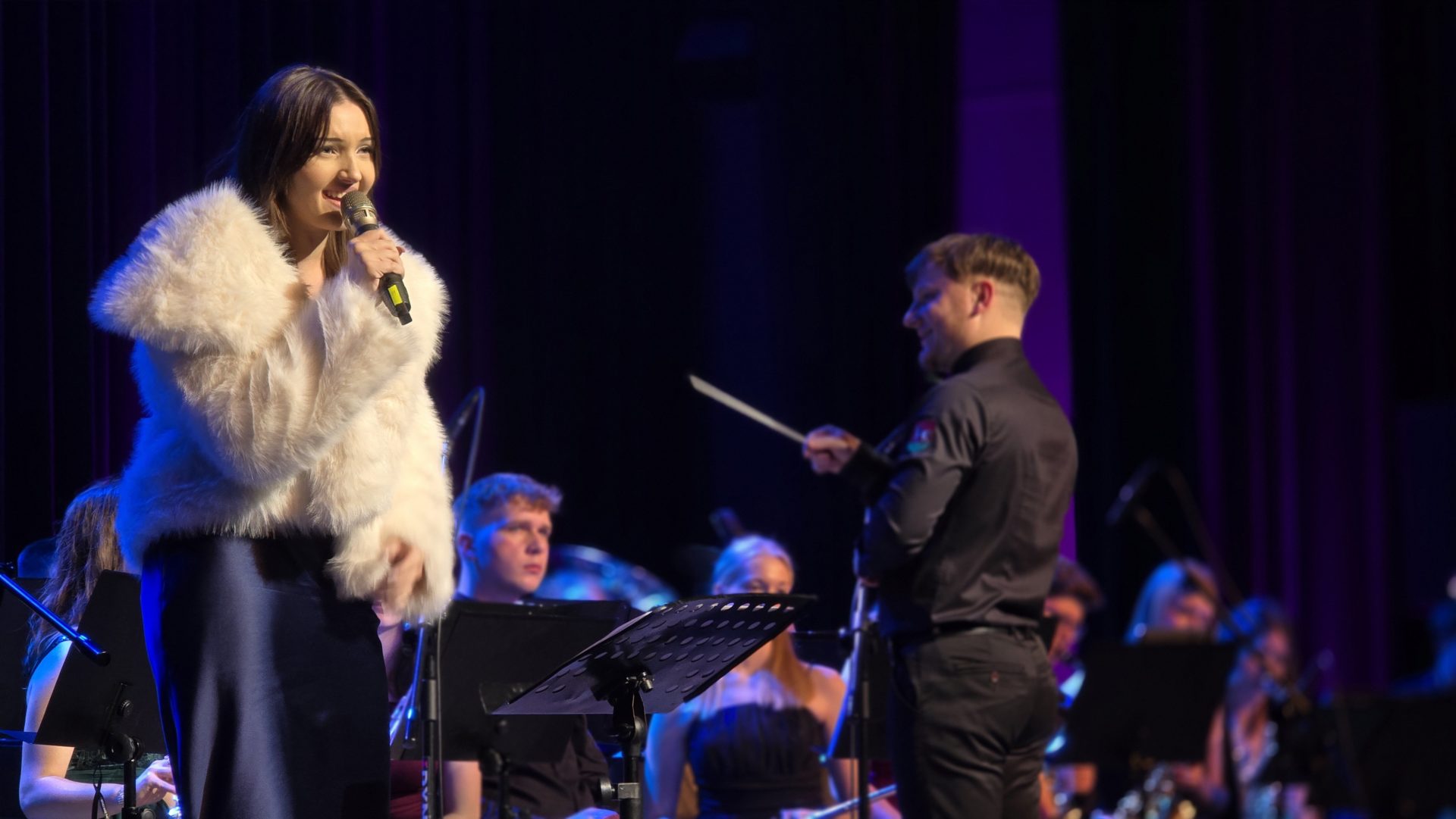 Program wieczoru był prawdziwą muzyczną podróżą przez style, epoki i nastroje. Koncert otworzyła efektowna suita „Tschaikovsky Portrait”, prezentująca najsłynniejsze motywy Piotra Czajkowskiego w widowiskowym brzmieniu orkiestry dętej, od pierwszych taktów budując uroczystą i elegancką atmosferę. W dalszej części publiczność usłyszała zarówno utwory nawiązujące do klimatu świąteczno-noworocznego, poruszające kolędy – jak i monumentalną muzykę filmową z filmu „Independence Day”. Utwór ten ma dla orkiestry szczególne znaczenie, gdyż był jednym z punktów programu finału 47. Małopolskiego Festiwalu Orkiestr Dętych Echo Trombity w Nowym Sączu, gdzie zespół zdobył III miejsce. Duże emocje wzbudził blok muzyki filmowej i animacyjnej, który spotkał się z bardzo żywym odbiorem publiczności. Nie zabrakło również klasyki i form scenicznych – publiczność wysłuchała „Tańca węgierskiego nr 5” Johannesa Brahmsa, czardasza z operetki „Cygańska miłość” Franza Lehára oraz jednej z najsłynniejszych arii operowych – „O mio babbino caro” Giacoma Pucciniego. W koncercie wystąpili soliści: Maja Fryś, Mariola Siepak-Drobna oraz Kamil Kołodziejczyk, którzy swoimi interpretacjami dodali programowi różnorodności, emocji i scenicznego blasku. W finałowej części wieczoru zabrzmiały jazzowe standardy oraz fragmenty musicalu „Upiór w operze”. Całość zwieńczył energetyczny utwór „Jak nie my to kto”, który wspólnie zaśpiewali wszyscy soliści oraz dyrektor Centrum Kultury i Filmu w Suchej Beskidzkiej Grzegorz Wysmołek. Ten wspólny finał stał się radosnym, integrującym akcentem koncertu i został nagrodzony długimi, gorącymi brawami.