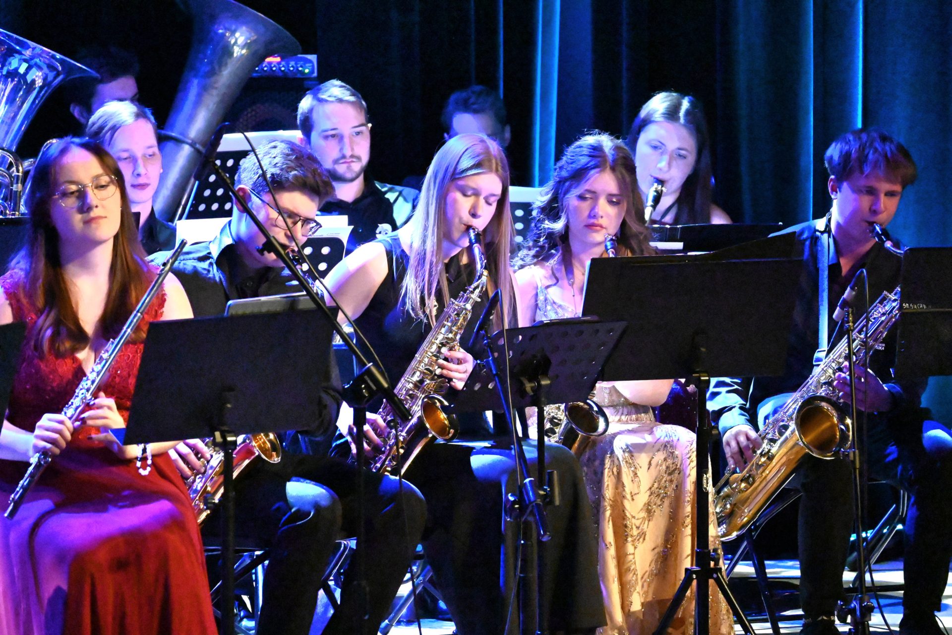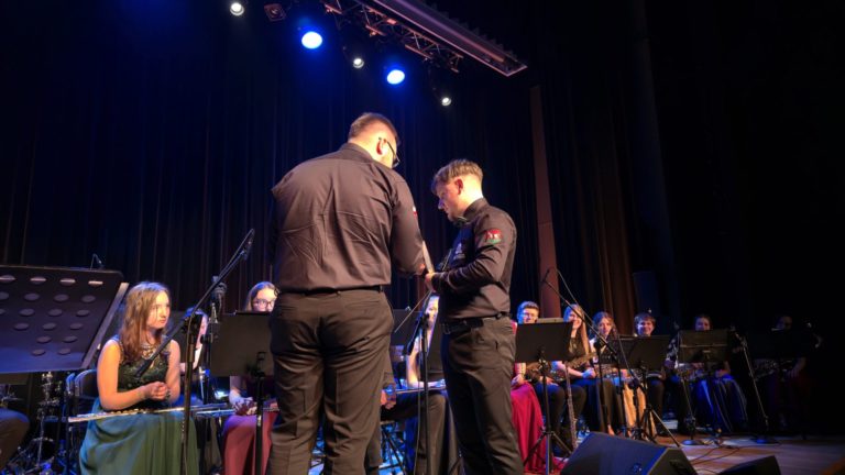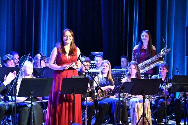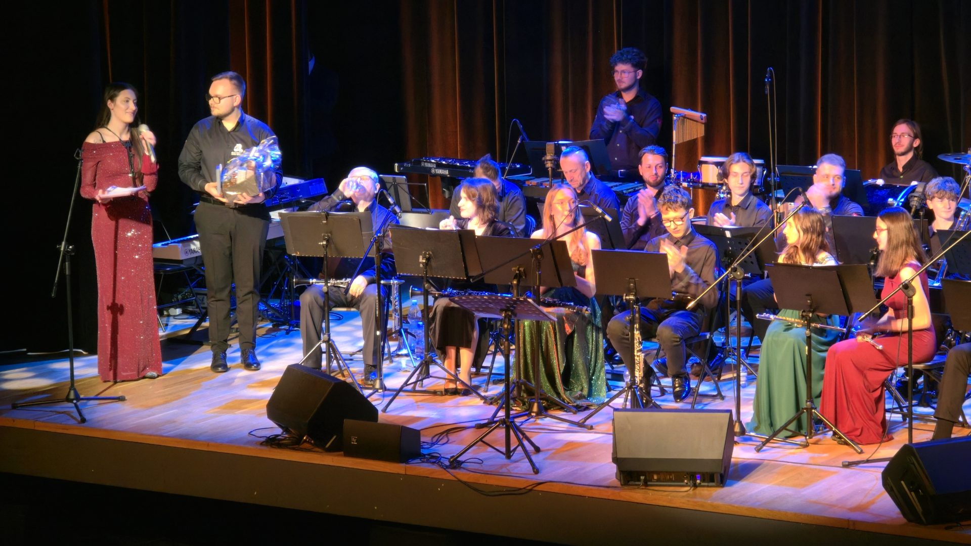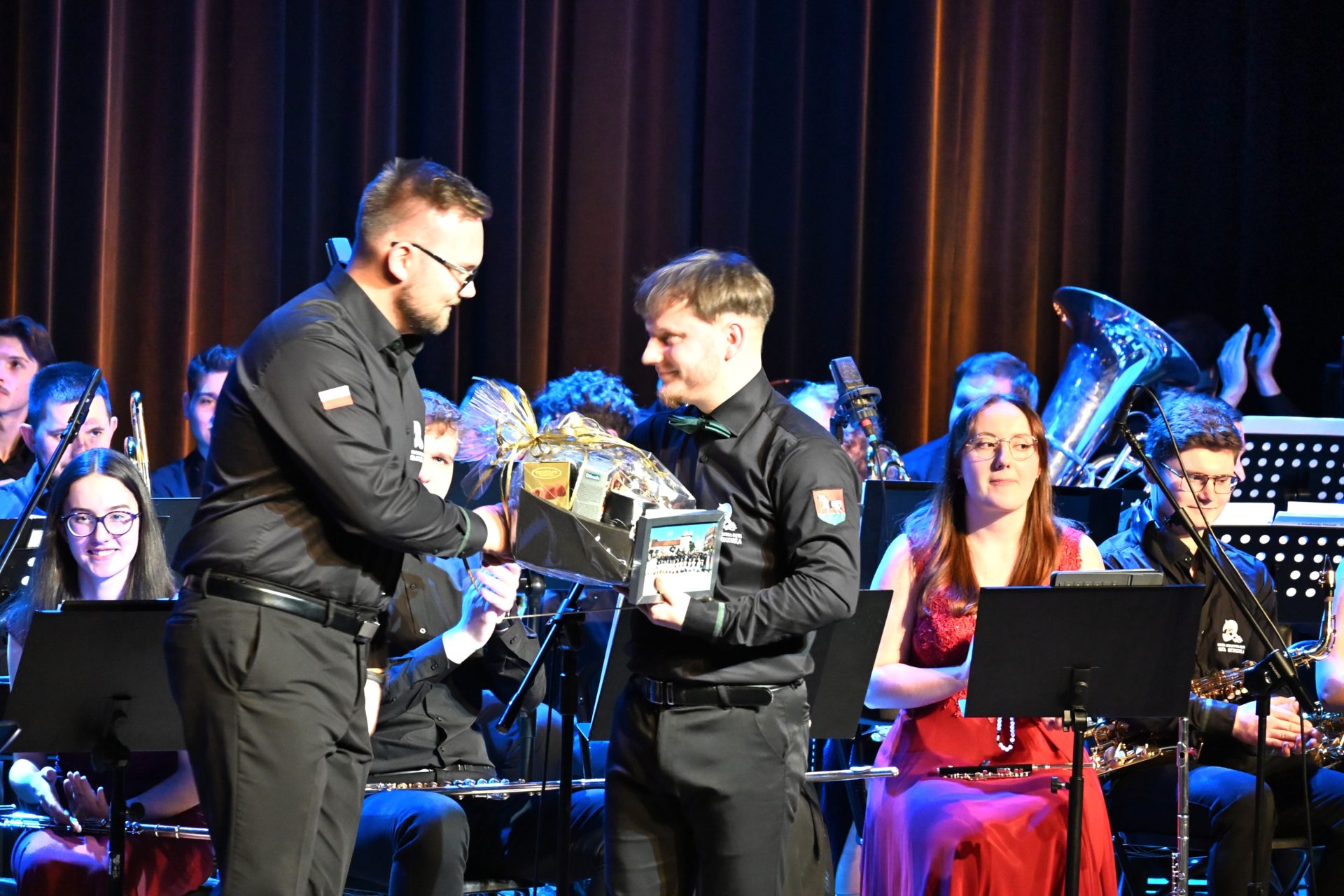 Ważnym momentem wieczoru były również podziękowania skierowane do Burmistrza Miasta Suchej Beskidzkiej, pana Stanisława Lichosyta, za wsparcie udzielane orkiestrze, w tym zakup dwóch nowych instrumentów – fletu piccolo oraz saksofonu barytonowego.