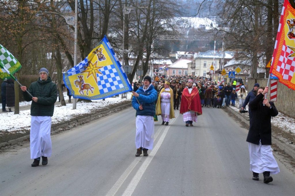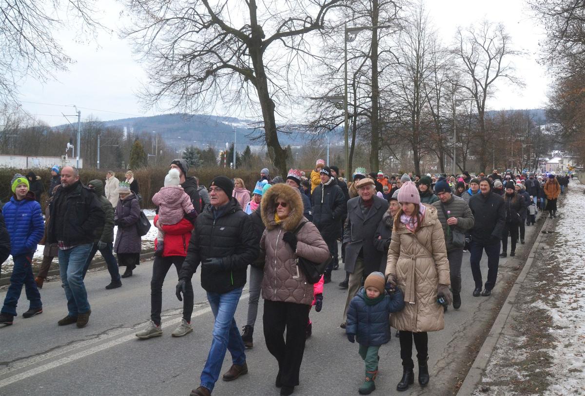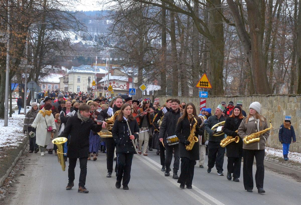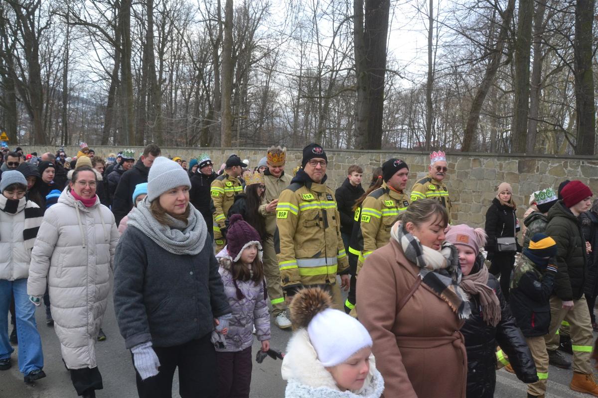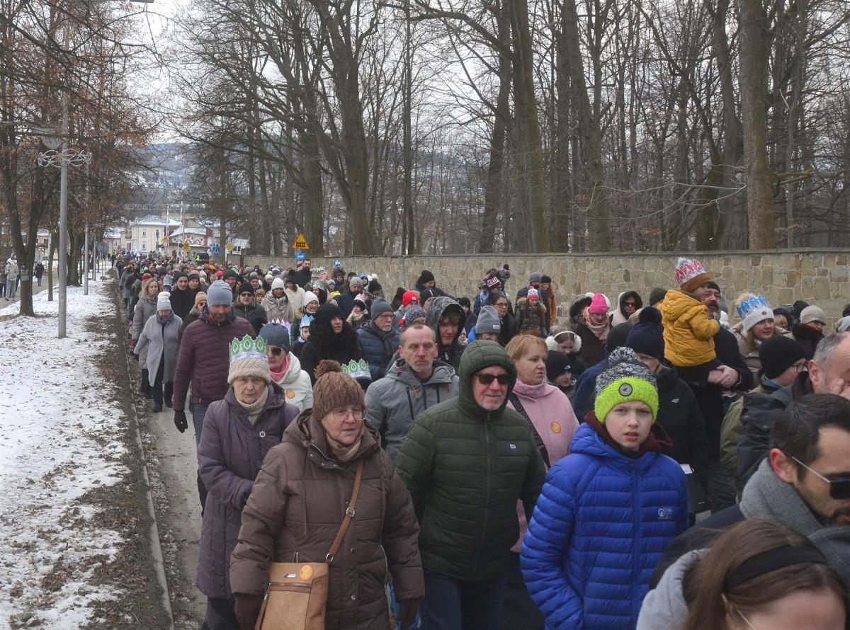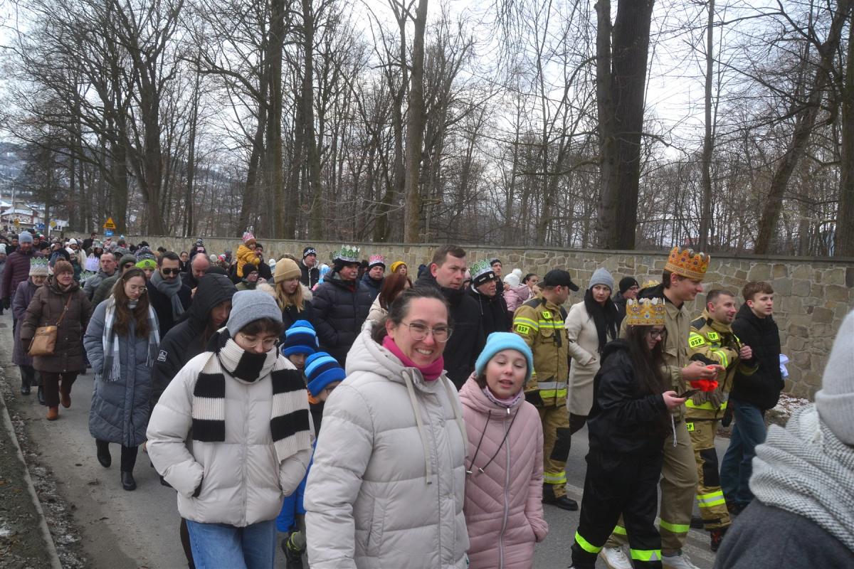 Uroczystości rozpoczęła msza święta w kościele parafialnym. Tuż po niej, około południa, ulicami miasta wyruszył barwny pochód. Na jego czele podążali Trzej Królowie, a towarzyszyły im zespoły regionalne, Miejska Orkiestra Dęta oraz Miejski Chór „Jasień” działające przy Centrum Kultury i Filmu. Tegoroczne hasło „Nadzieją się cieszą!” wybrzmiewało nie tylko w słowach, ale przede wszystkim w atmosferze wydarzenia. Wspólne kolędowanie sprawiło, że orszak szybko zamienił się w rozśpiewany tłum, w którym obok siebie szły rodziny z dziećmi, seniorzy i młodsi mieszkańcy miasta. Wielu z nich miało na głowach papierowe korony rozdawane po Mszy Świętej, a śpiewniki pomagały włączyć się w kolędowanie także tym, którzy na co dzień śpiewają rzadziej.