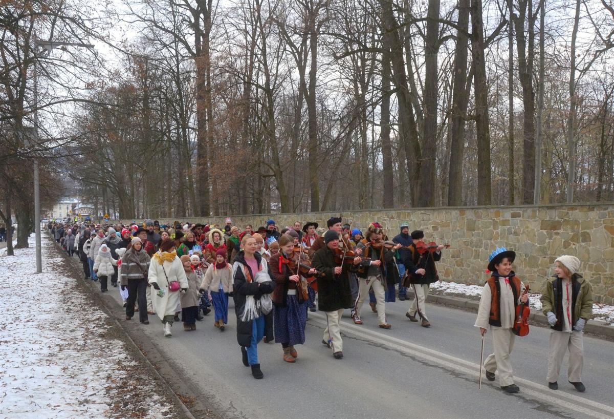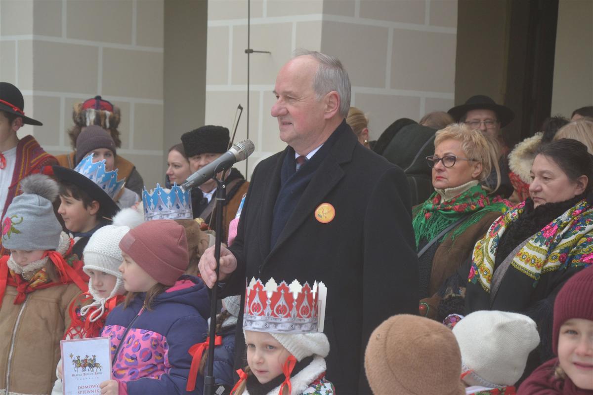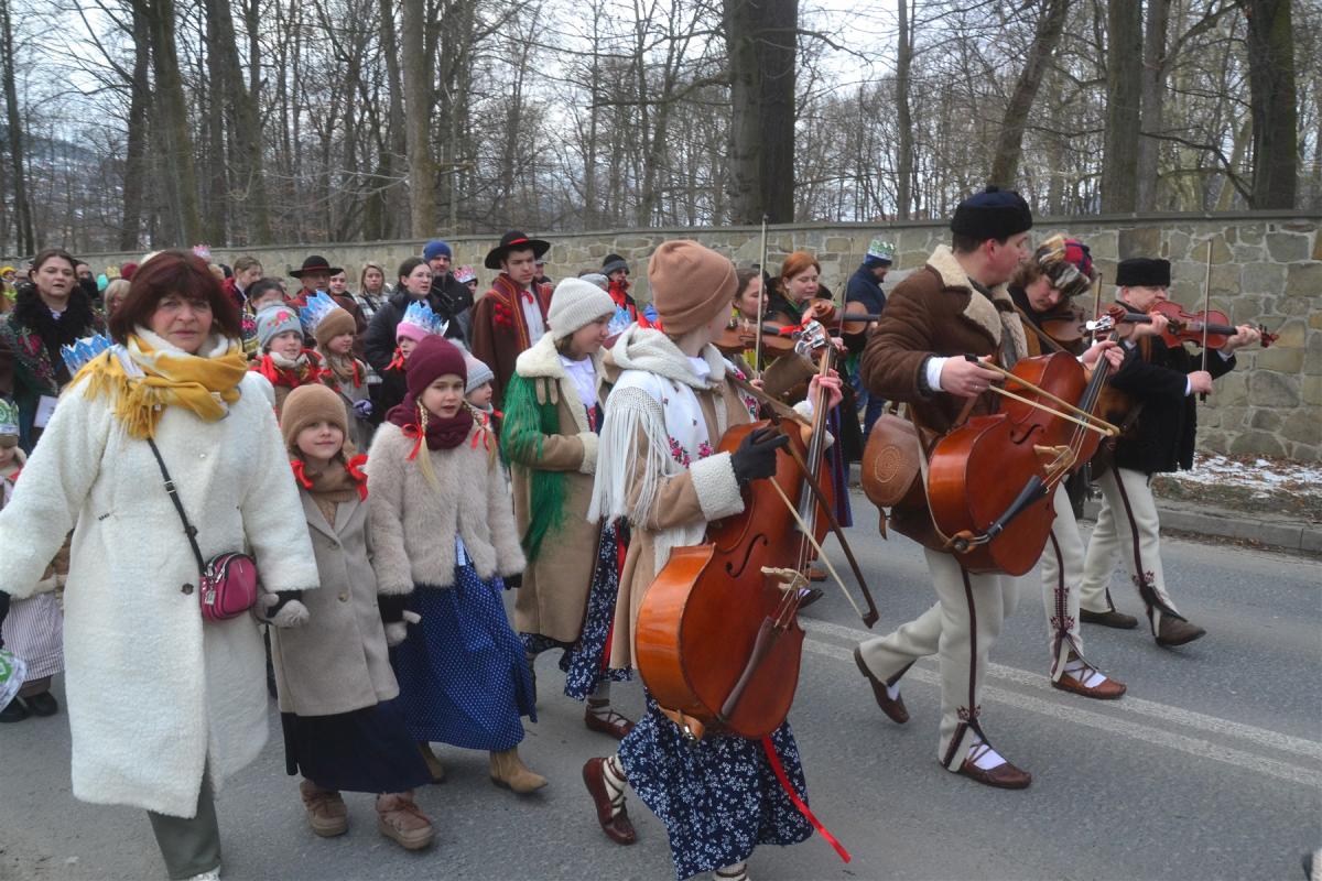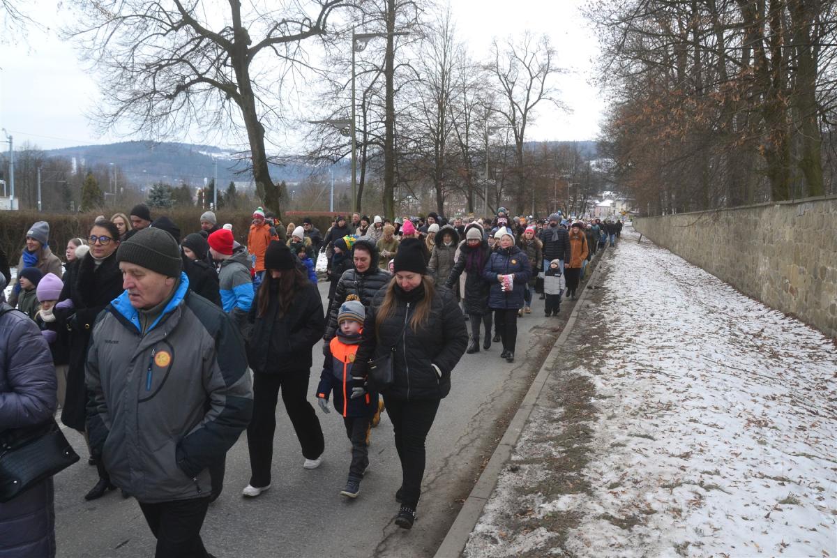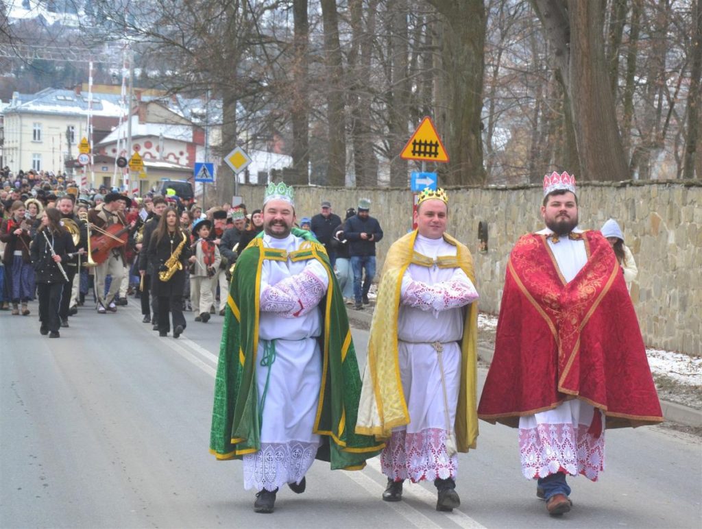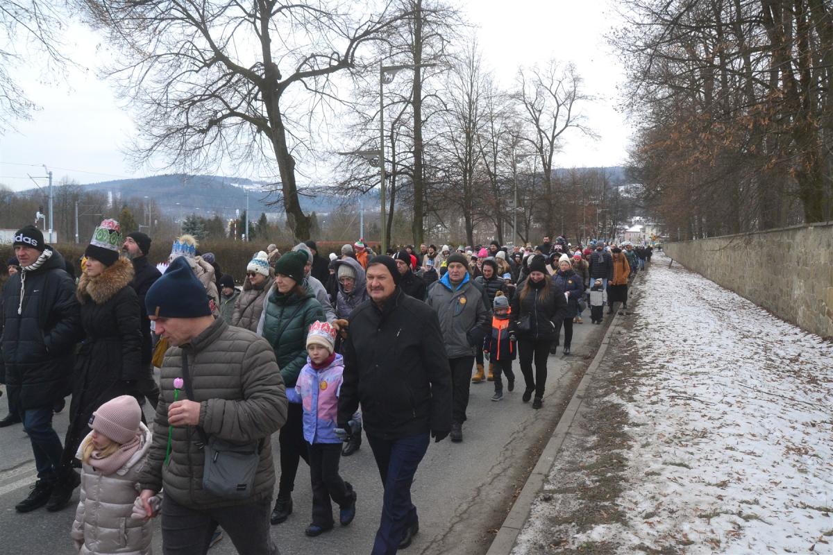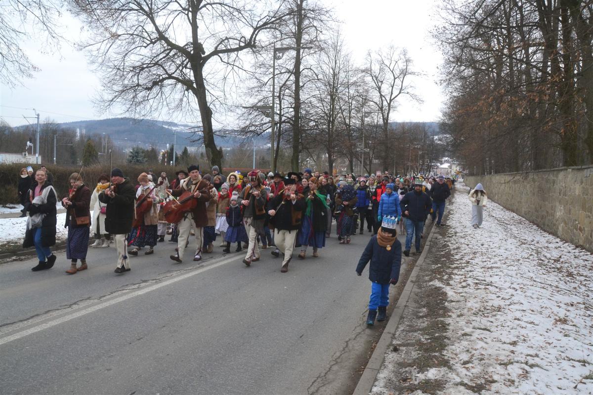 Uroczystości rozpoczęła msza święta w kościele parafialnym. Tuż po niej, około południa, ulicami miasta wyruszył barwny pochód. Na jego czele podążali Trzej Królowie, a towarzyszyły im zespoły regionalne, Miejska Orkiestra Dęta oraz Miejski Chór „Jasień” działające przy Centrum Kultury i Filmu. Tegoroczne hasło „Nadzieją się cieszą!” wybrzmiewało nie tylko w słowach, ale przede wszystkim w atmosferze wydarzenia. Wspólne kolędowanie sprawiło, że orszak szybko zamienił się w rozśpiewany tłum, w którym obok siebie szły rodziny z dziećmi, seniorzy i młodsi mieszkańcy miasta. Wielu z nich miało na głowach papierowe korony rozdawane po Mszy Świętej, a śpiewniki pomagały włączyć się w kolędowanie także tym, którzy na co dzień śpiewają rzadziej.