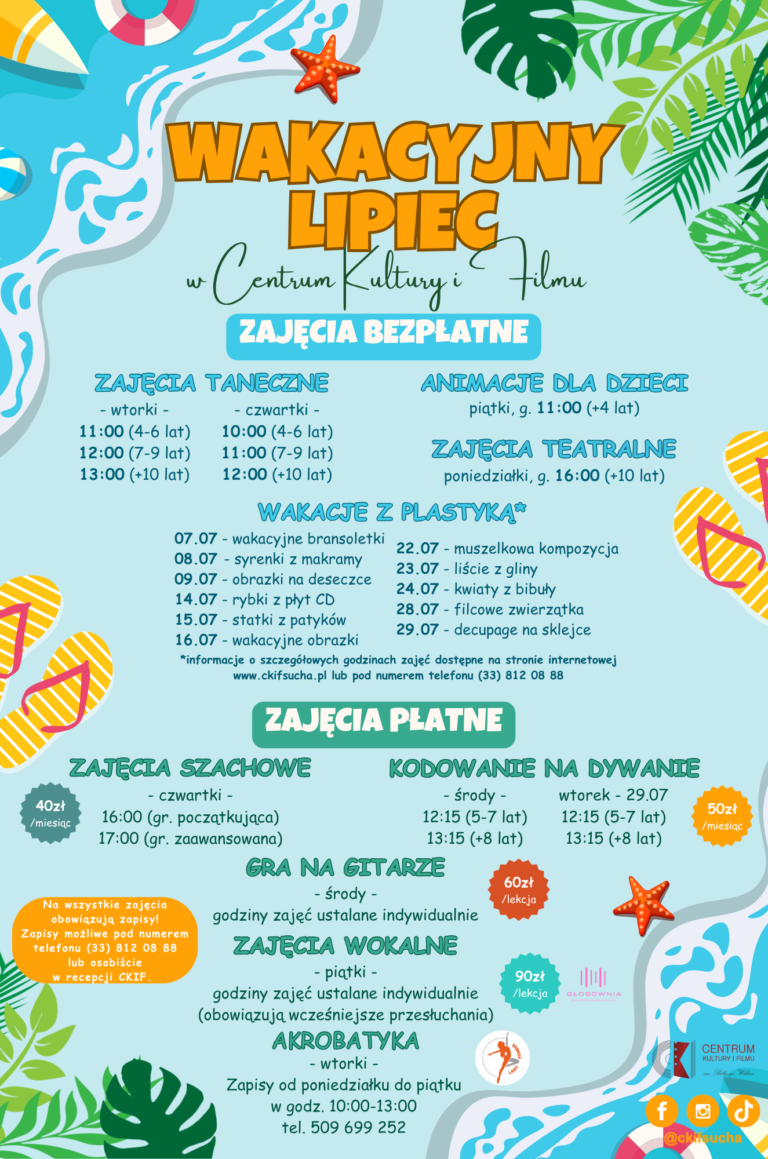 Wakacje czas start! ☀️ Serdecznie zapraszamy na bezpłatne oraz płatne lipcowe zajęcia do Centrum Kultury i Filmu! Każdy znajdzie coś dla siebie – przewidzieliśmy szereg najróżniejszy [...]