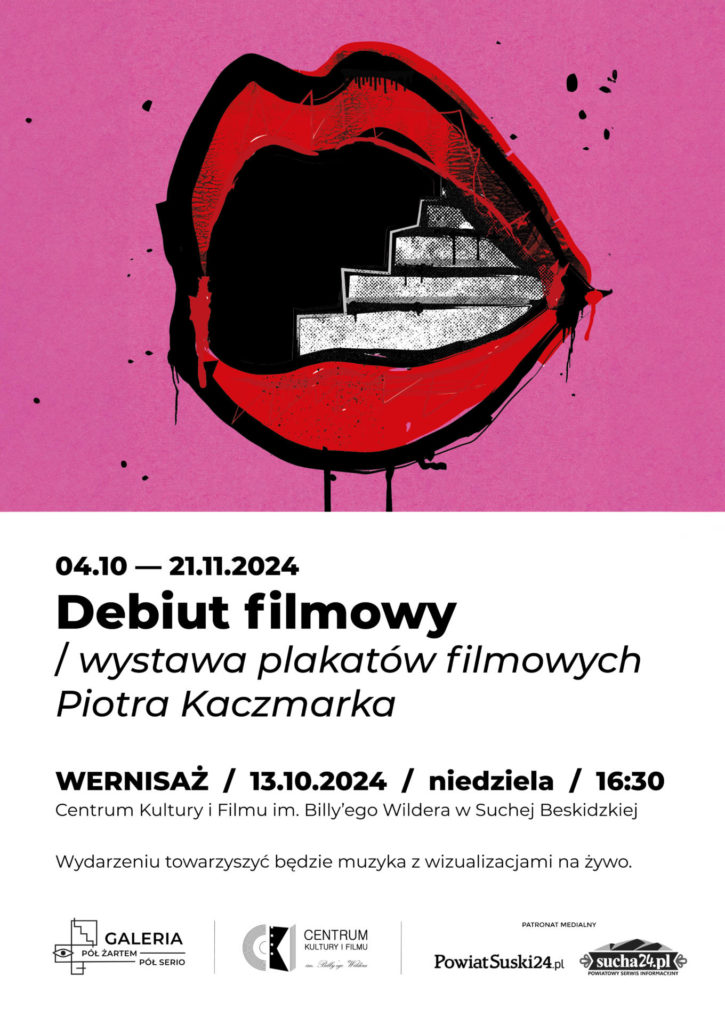 Serdecznie zapraszamy na wernisaż wystawy pt. „Debiut filmowy” Piotra Kaczmarka, który odbędzie się 13 października 2024 r. o godzinie 16:30 w Centrum Kultury i Filmu w Suchej Beskidzkiej.