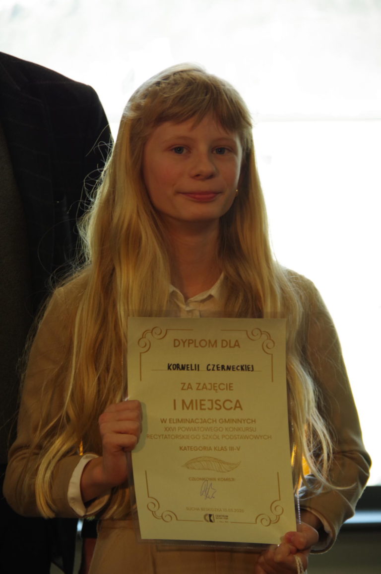Serdecznie gratulujemy wszystkim uczestnikom konkursu, a w szczególności laureatom. Uczniowie, którzy zajęli w swoich kategoriach wiekowych dwa pierwsze miejsca uzyskały prawo reprezentowania Suchej Beskidzkiej w etapie powiatowym.