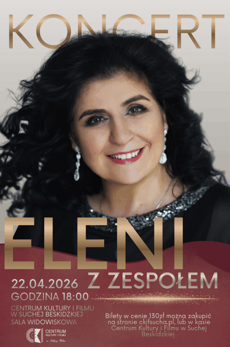 Zapraszamy na wyjątkowy koncert jednej z największych gwiazd polskiej sceny muzycznej! Eleni – koncert na żywo Centrum Kultury i Filmu w Suchej Beskidzkiej22 kwietnia 2026 r. (środa)Godzina [...]