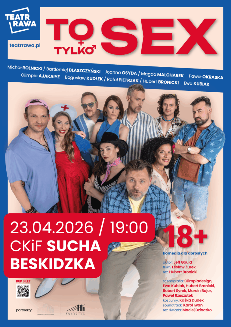 Gorący wieczór z najnowszą komedią Teatru Rawa To tylko SEX – komedia gwiazdorska 18+ 23.04.2026 / czwartek / o godz. 19:00 na scenie Centrum Kultury i Filmu w Suchej Beskidzkiej Najlepszy [...]